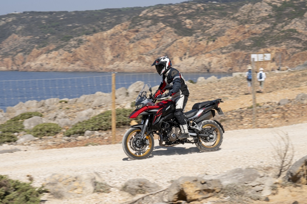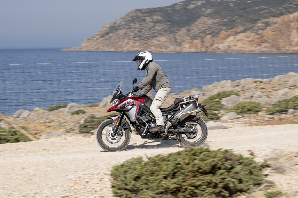 É a única que daria para comparar diretamente com outra das presentes neste trabalho, a QJ MOTOR SRT 700X, que na verdade, são uma espécie de gémeas separadas à nascença e que por isso, embora partilhem grande parte dos componentes acabam por ser bastante diferentes. A TRK 702 X é um daqueles modelos que foi um sucesso desde o dia em que foi mostrada como protótipo no Salão de Milão, aproveitando o enorme sucesso da irmã TRK mais pequena, a 502. Não só os utilizadores da 502 estavam “mortinhos” para que esta versão de maior cilindrada fosse apresentada para poderem fazer o tão desejado “upgrade” como também, pela fama que as “meio litro” alcançaram, muitos motociclistas que queriam comprar um trail de média/alta cilindrada e cujos orçamentos não lhes permitia sequer sonhar com outras propostas disponÍveis no mercado, como por exemplo as japonesas, ficaram ansiosamente à espera que a Benelli lançasse a TRK maior de sempre. E a espera compensou para clientes e marca, já que por um lado os clientes têm agora acesso a um modelo que além de bem conseguido esteticamente (graças ao centro de design ainda continuar a ser em Itália) está também muito bem conseguido em termos de ciclística, acabamentos e motor. Daí não haver motos que cheguem para as encomendas… Mas o que tem de tão especial este modelo? Bem, desde logo por se enquadrar num dos segmentos mais desejados do mercado, depois pelo design aventureiro que esta versão X apresenta (há outra versão mais estradista), a vocação aventureira com jante de 19” na frente e 17” atrás vestidas com os pneus Pirelli Scorpion Rally STR; motor de dois cilindros paralelos com 698 cc, a 4T, refrigerado por líquido com 70 cv de potência e um binário de 70 Nm; iluminação LED; proteções de mãos; descanso lateral e central; postura de condução alta e natural e uma ciclística muito equilibrada, leve e ágil.