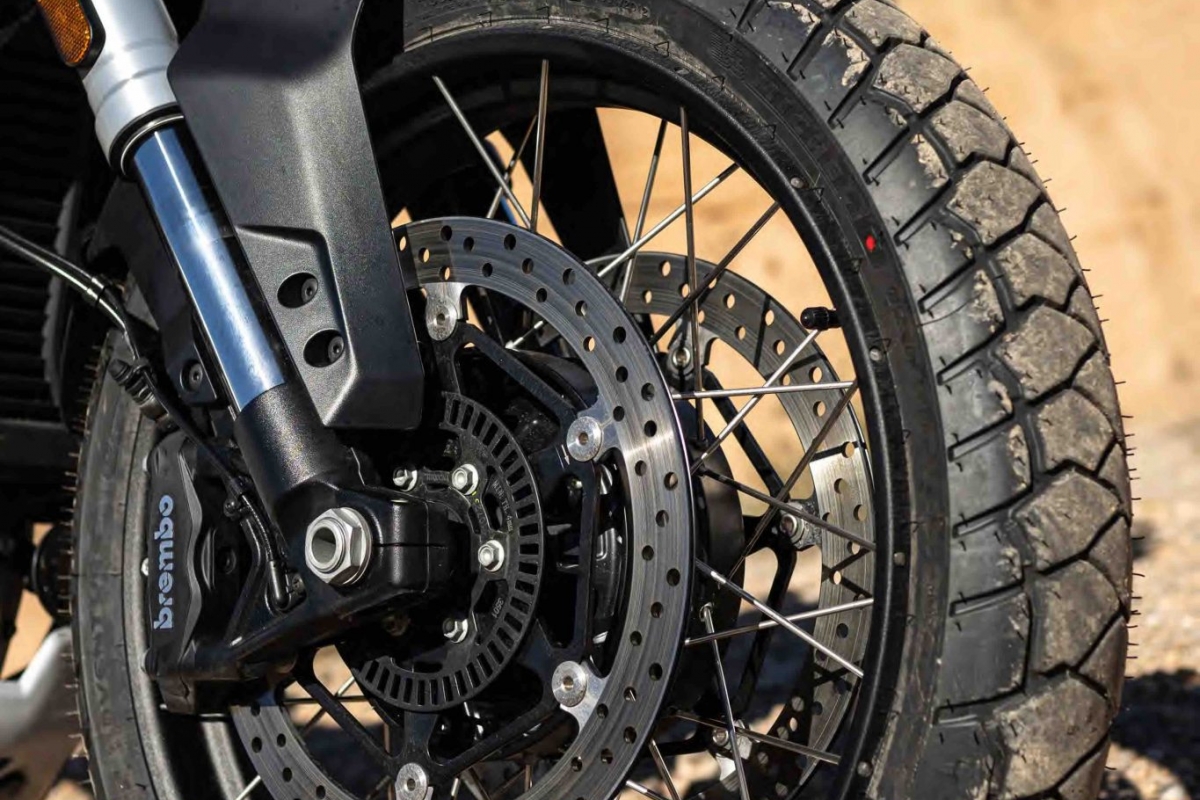 | Travão Dianteiro: | Dois discos de 320 mm, pinças radiais 4 pistões, ABS |