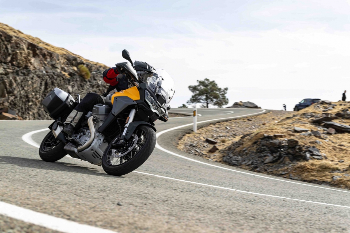 Equilíbrio, conforto e boas sensações são pratos forte deste modelo. A jante de 19”na frente (17” atrás) em conjunto com o baixo centro de gravidade, pneus Michelin Anakee Adventure e uma suspensão ajustável, traduz-se em prazer de condução. Se tudo é perfeito, não, não é, mas o que há a corrigir são questões de pormenor como o tacto da caixa de seis velocidades, que embora esteja bem escalonada poderia ter melhor tacto, mesmo quando temos o sistema de quick shift instalado (mas, no entanto, nota-se a evolução para a anterior geração). Em ordem de marcha, são 246 kg, mas distribuídos de forma equilibrada, com um baixo centro de gravidade que a tornam muito equilibrada. Em termos de agilidade, é o suficiente para nos divertirmos… e muito. Postura de condução natural, confortável e descontraída, com guiador largo que transmite muita confiança. Para brisas ajustável eletronicamente até aos 150 km/h, suspensões firmes, ajustáveis e uma travagem muito poderosa. A eletrónica é de última geração, com diversos modos de potência facilmente ajustáveis e com a mais valia de podermos desligar por completo quer o controlo de tração como o ABS. Uma moto muito moderna, com tudo o que necessitamos. Além disso, foge por completo do comum e tradicional oferta do mercado, o que lhe vale uns pontos extra. Fiabilidade e valor acrescentado, não lhe falta. Disponível a partir do final de março, início de abril no mercado nacional, está disponível em duas opções de cor (preto ou laranja) na versão base ou com PFF, com o preço a começar nos 16 499€ para a versão base ou 17 299€ para a versão PFF.