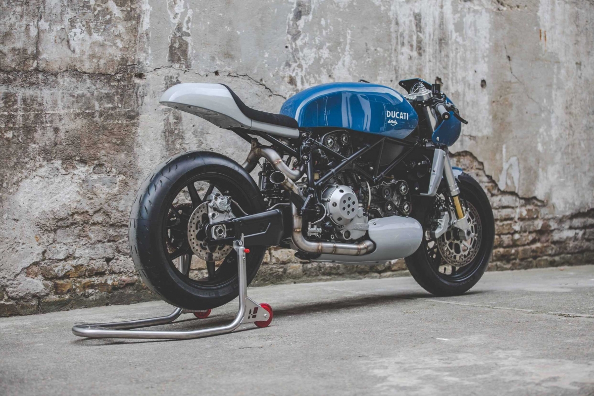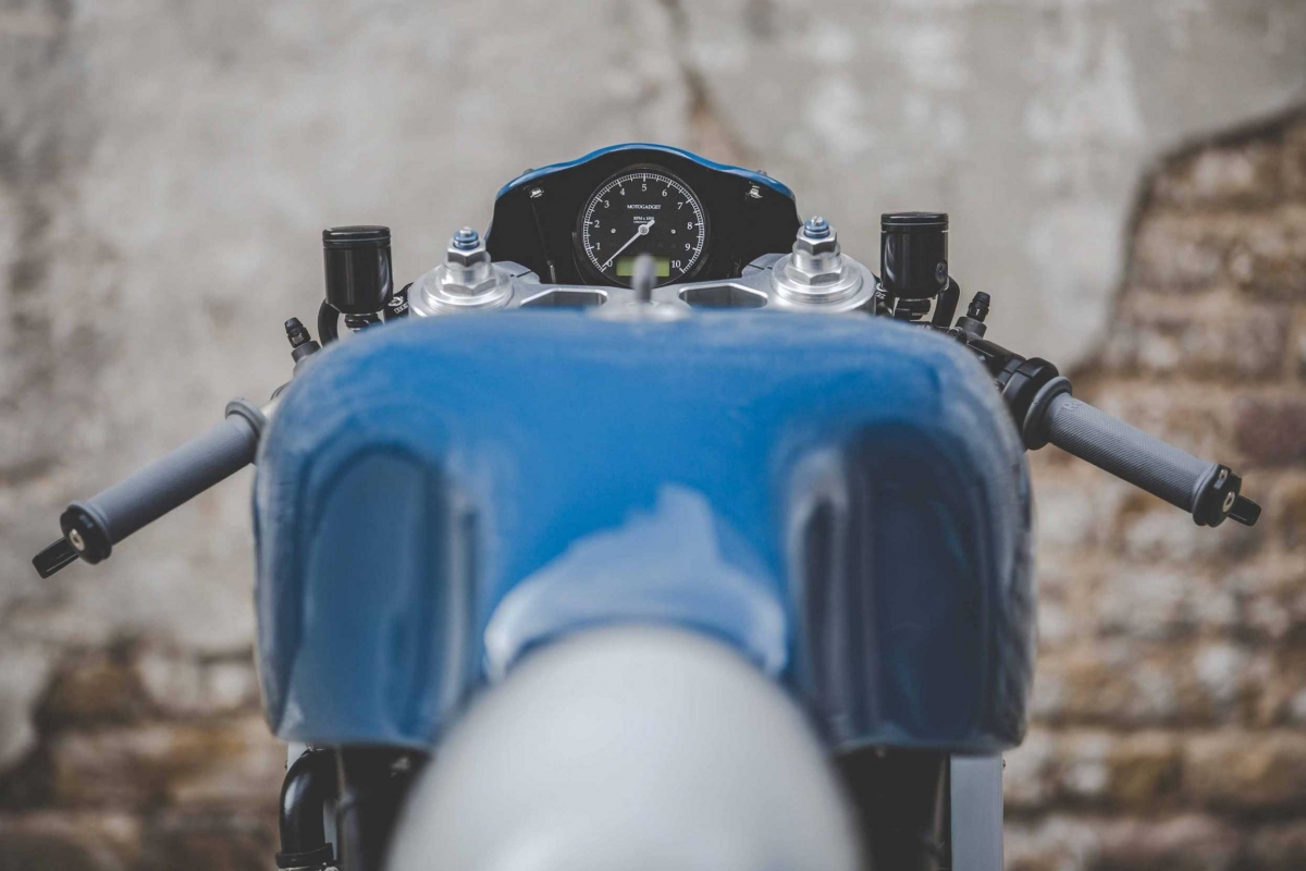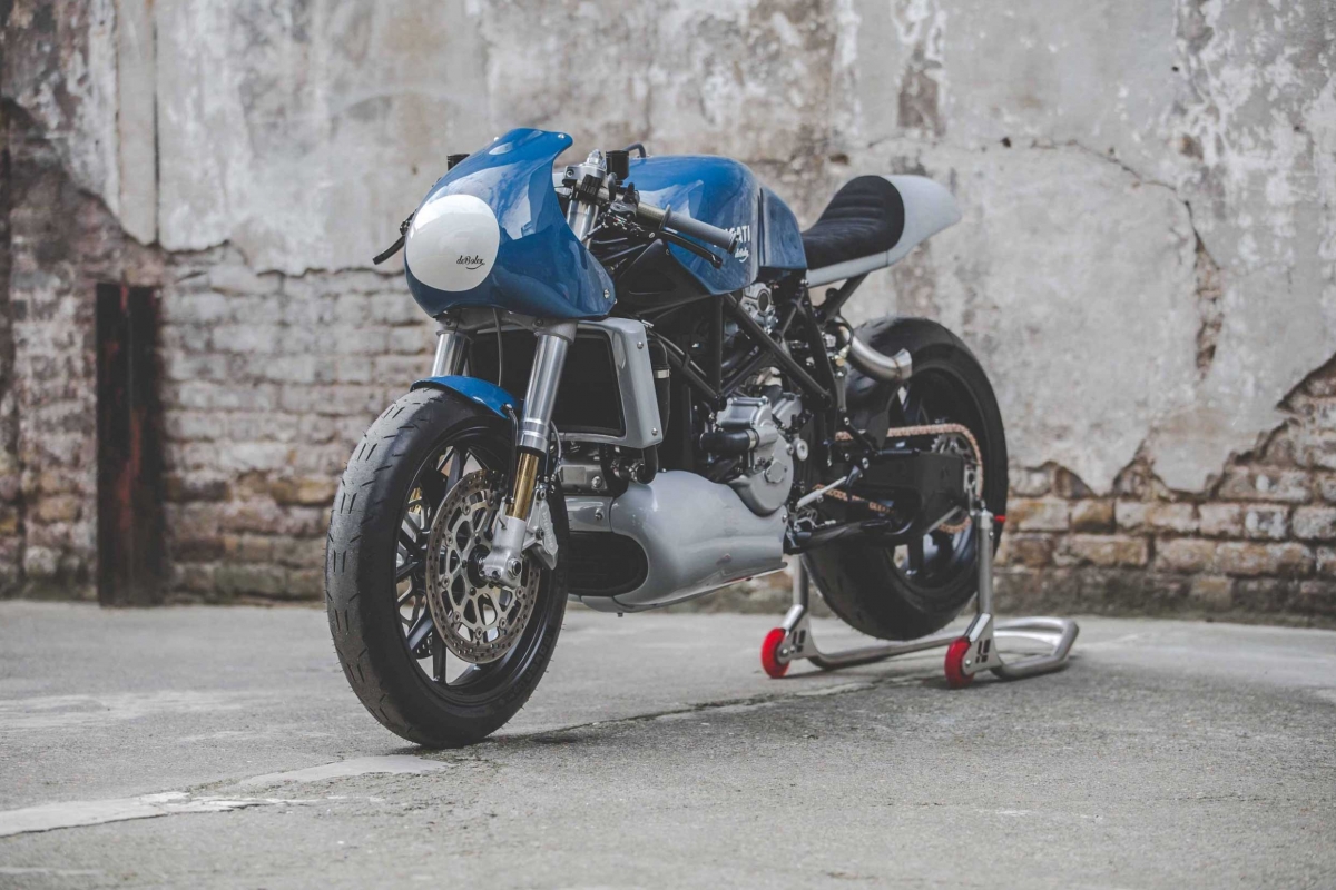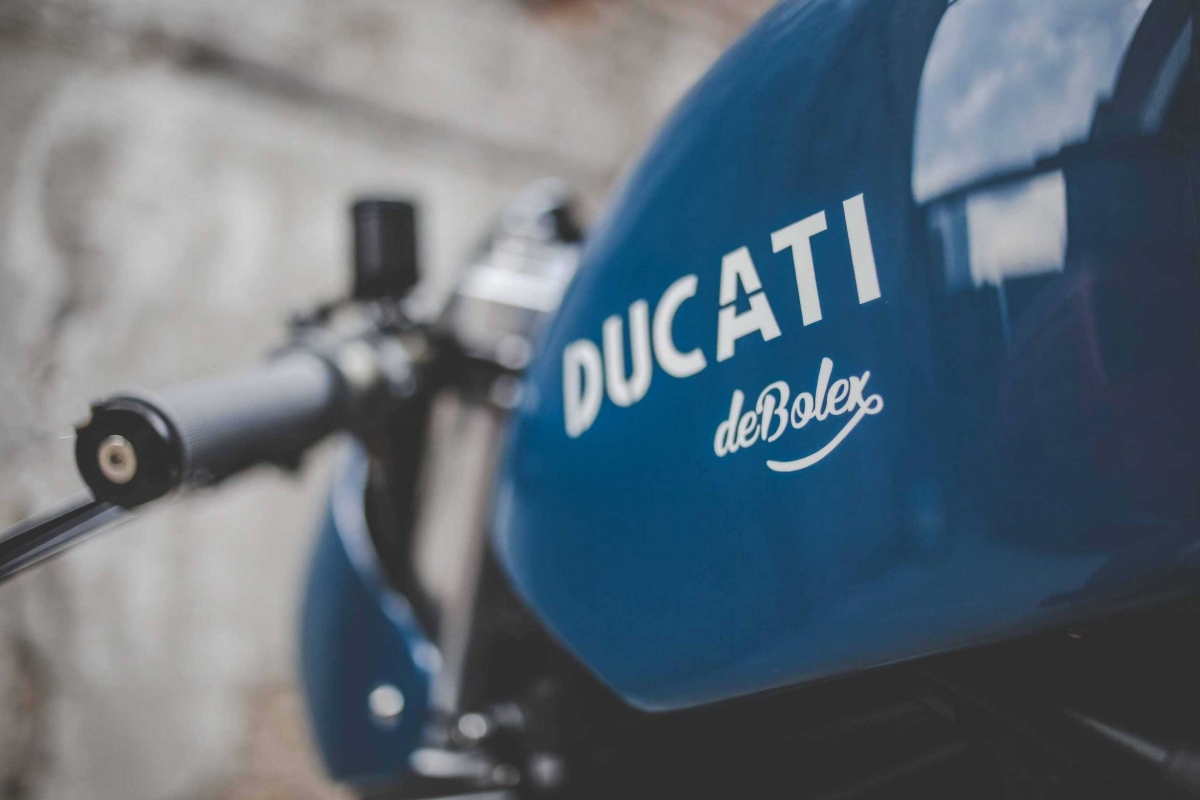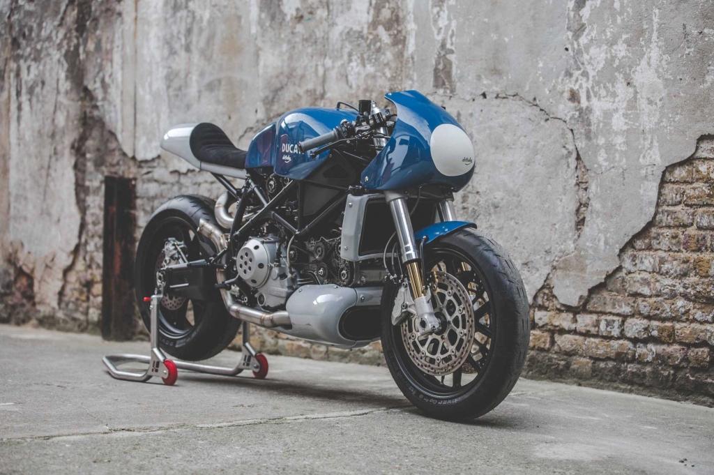 Criada pela especialista em customização deBolexEngineering, sediada em Londres, esta é uma das versões mais famosas, baseada na Ducati749S. Com inspiração no design de automóveis de corrida, motos e aviões clássicos, o tanque de combustível, a cauda e a “bellypan” foram feitas de forma artesanal, a partir de alumínio, e pintados de azul e cinzento.