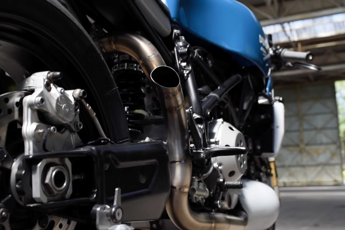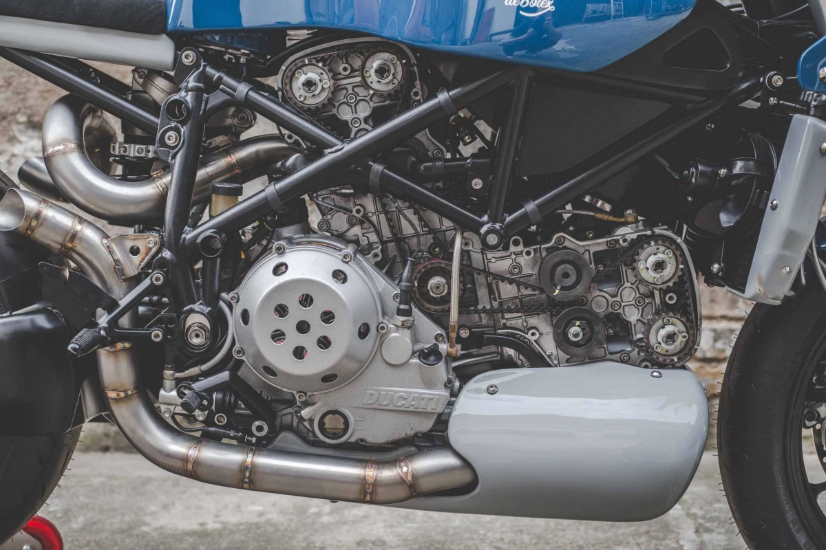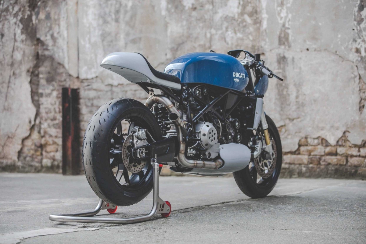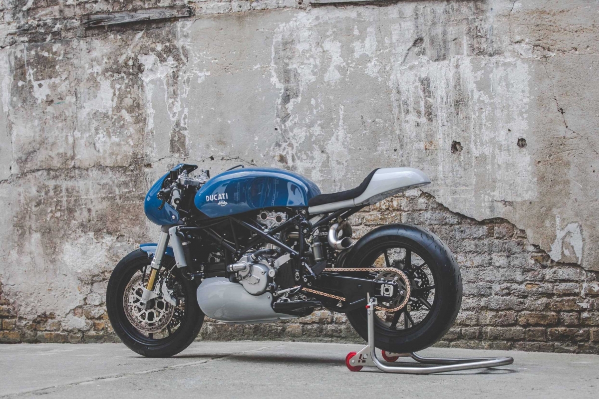Criada pela especialista em customização deBolexEngineering, sediada em Londres, esta é uma das versões mais famosas, baseada na Ducati749S. Com inspiração no design de automóveis de corrida, motos e aviões clássicos, o tanque de combustível, a cauda e a “bellypan” foram feitas de forma artesanal, a partir de alumínio, e pintados de azul e cinzento.