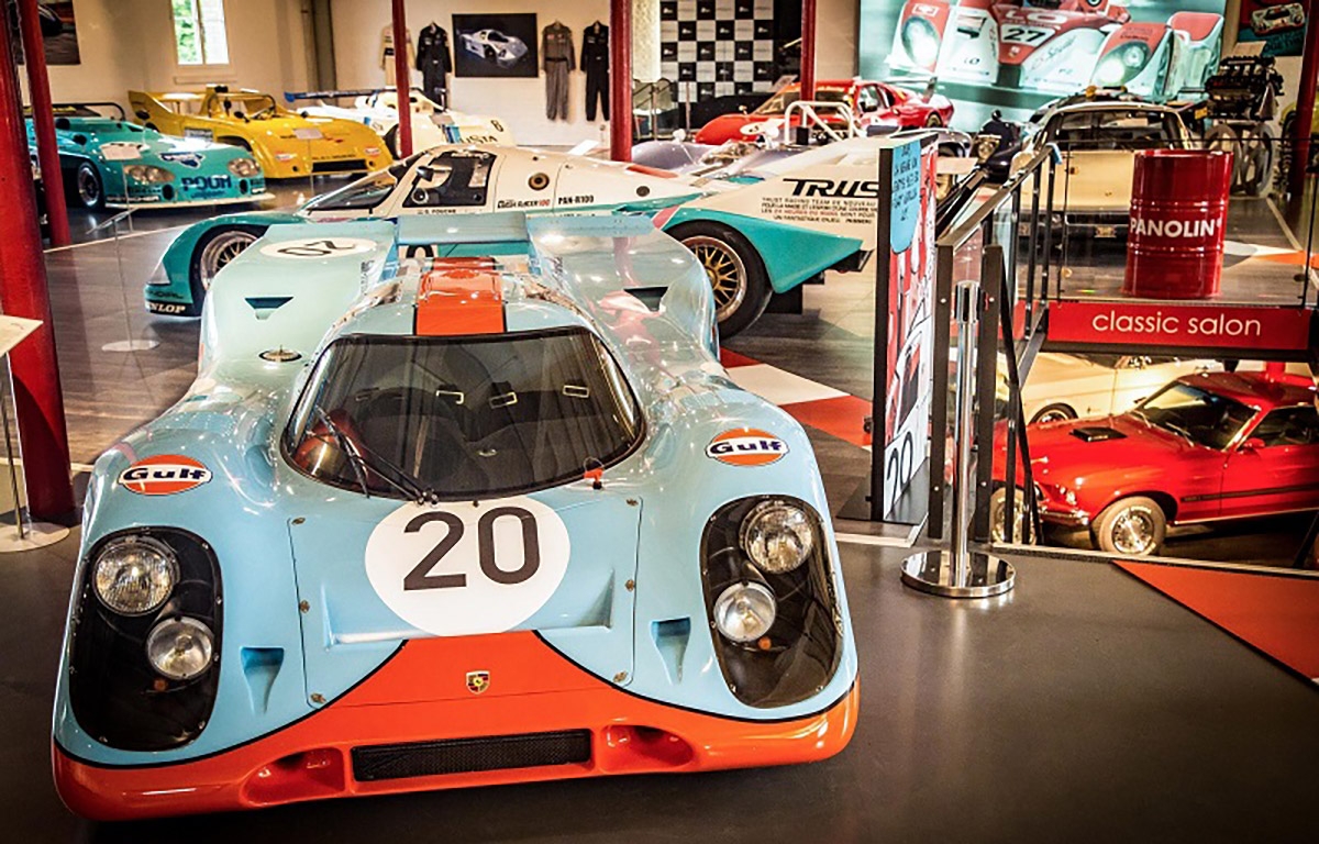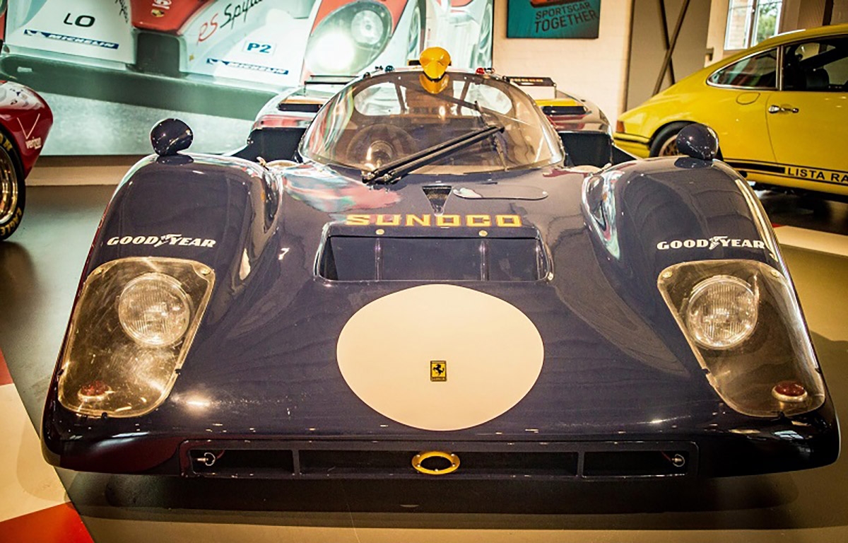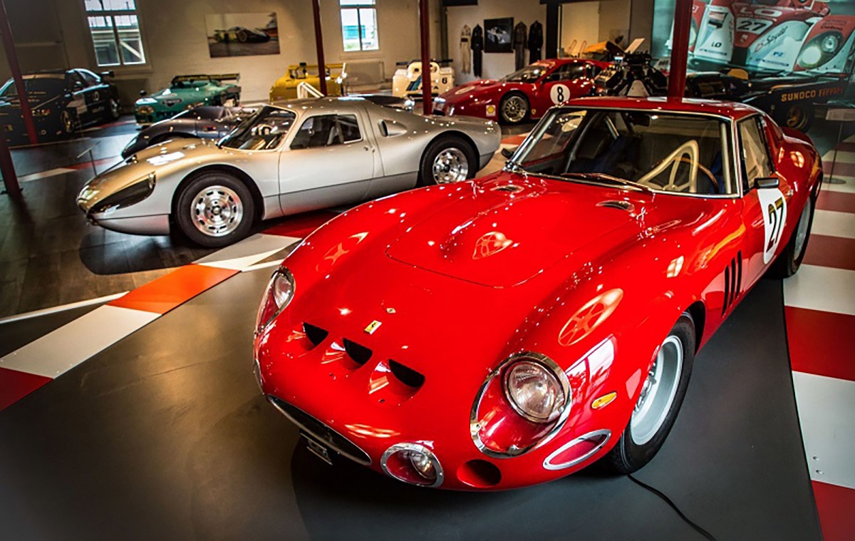 Do lado de fora do museu existe um tributo a James Dean, com uma escultura do Porsche 550 Spyder. Mal se entra a atenção vira-se para o Ferrari 330 GTO, apesar de este ser uma réplica, mas com uma história interessante por trás, tendo pertencido a David Piper. Somente três exemplares foram produzidos do 330 GTO, equipado com o motor V12 de 4.0L, já que não conseguiu ser homologado a tempo.