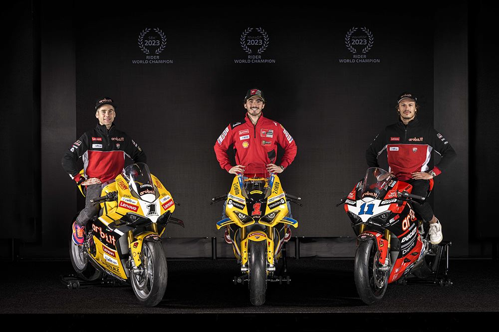 Apresentadas durante o evento “Campioni in Festa”, estas máquinas refletem o sucesso sem paralelo da Ducati em 2023, sendo o único fabricante a conquistar os campeonatos de MotoGP e WorldSBK consecutivamente, além do título Mundial de Supersport.
