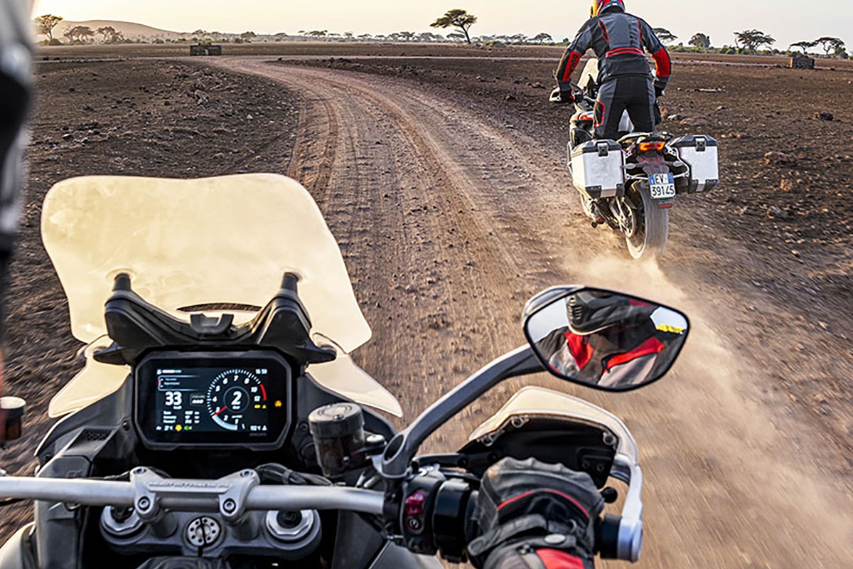 Com a “Rally”, a Ducati transporta o espírito ‘globetrotter’ da Multistrada V4 para um patamar ainda mais elevado, graças ao melhor conforto para condutor e passageiro, maior autonomia e uma aptidão para off-road ainda mais pronunciada, sem negligenciar a performance (170 cv), fiabilidade e custos de manutenção, com intervalos de manutenção a cada 60.000 km e mudança de óleo a cada 15.000 km/24 meses, graças ao motor V4 Granturismo de 1158 cc. A nova estratégia de desativação estende-se à bancada de cilindros traseira mesmo quando rodando a baixa velocidade, quando o regime do motor e a solicitação de binário a partir do acelerador são baixas, com um impacto positivo no consumo de combustível, que desce em cerca de 10%.
