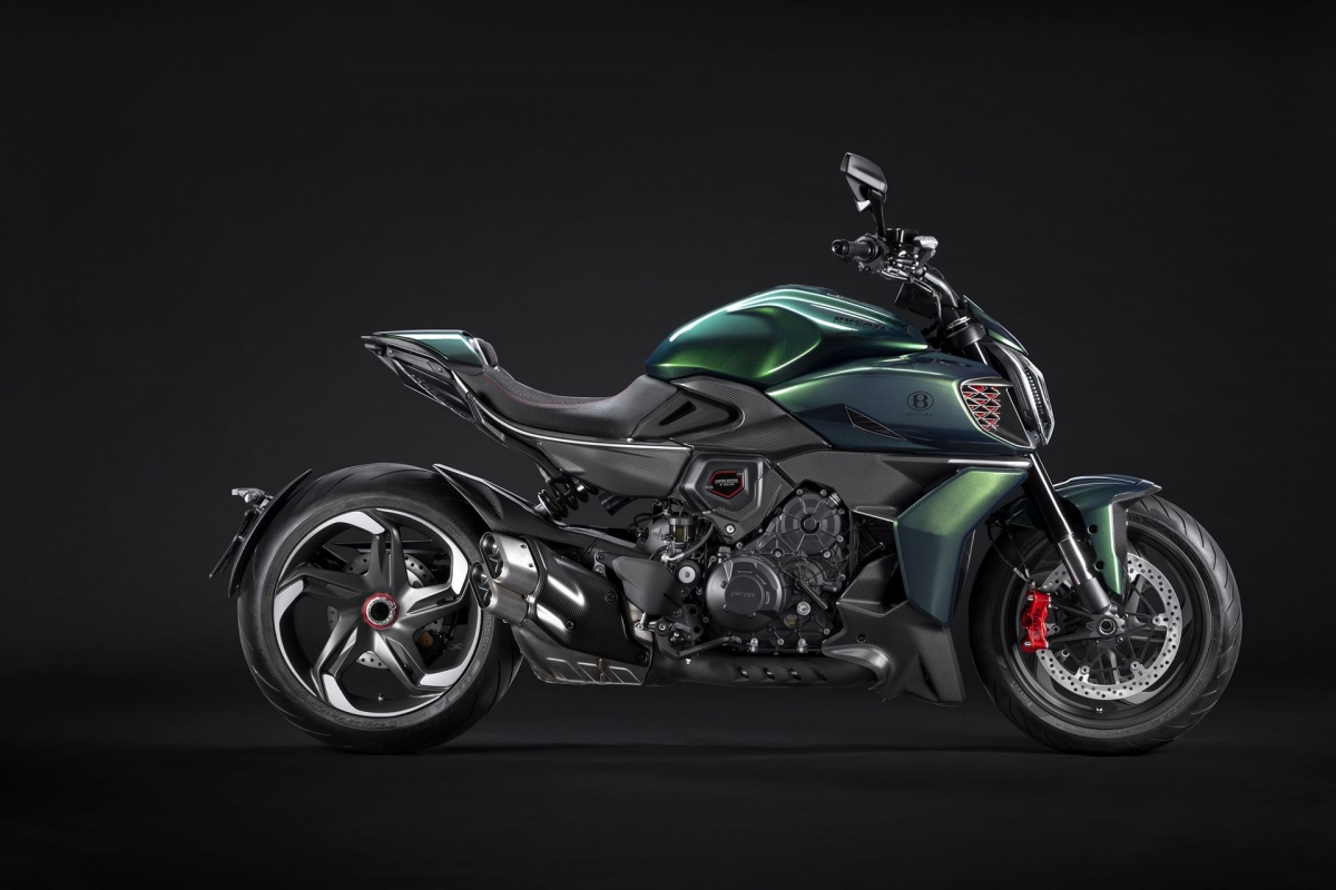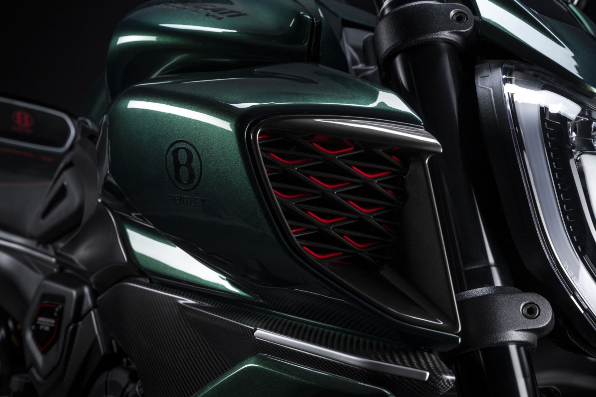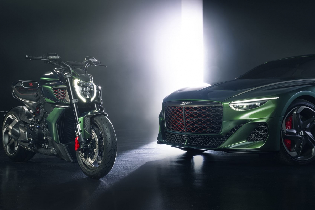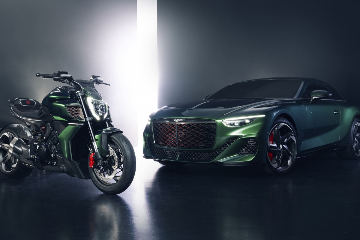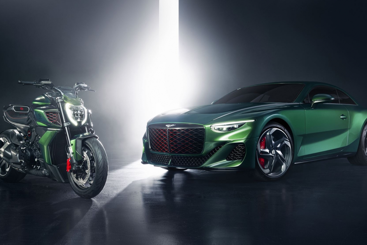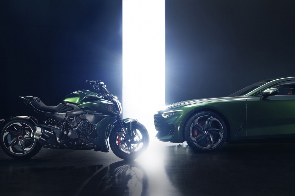 Para quem o Bentley Batur não for suficiente… a marca propõe como parceira uma Ducati Diavel muito especial, de edição limitada. Na génese desta série especial limitada a 50 exemplares, encontramos inúmeros elementos caraterísticos do Batur, dos quais 18 serão feitos à mão pela Bentley.
