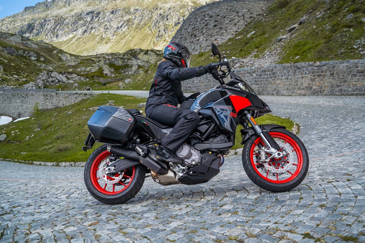 Para 2024, a Multistrada V2 S atualiza a sua gama de cores com o novo esquema Thrilling Black & Street Grey, que se junta ao clássico esquema de cores Ducati Red. Esta opção realça o espírito desportivo com um esquema de cores que alterna a elegância do Street Grey com a energia do GP19 Red. Completando a imagem estão as jantes vermelhas e os novos grafismos do nome do modelo.