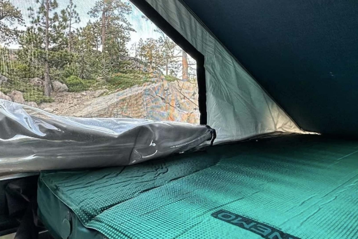O design foi concebido para as quatro estações do ano, com isolamento em lã Havelock e paredes laterais em tecido isolado, janelas Tern Overland opcionais, um colchão insuflável Nemo Roamer de 132 x 198 x 10 cm e duas calhas em “L” para montagem de acessórios.