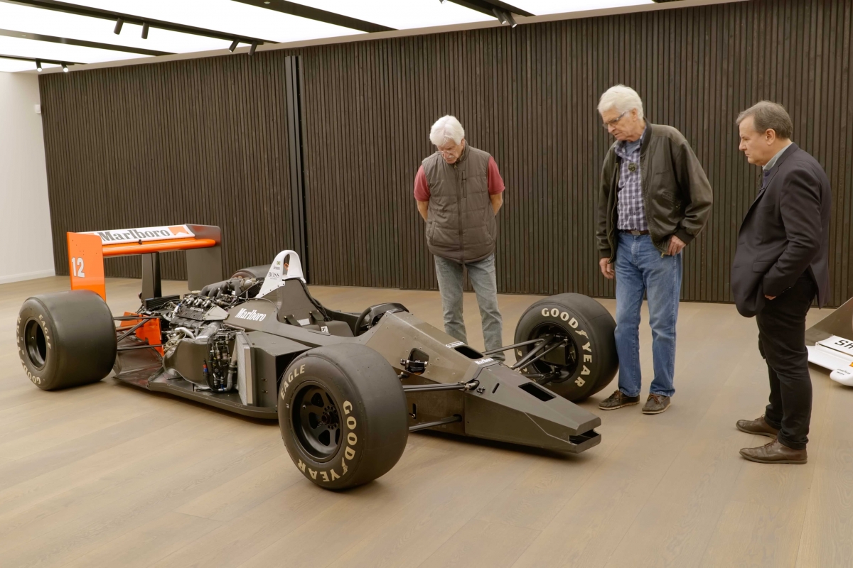 Podemos ouvir o testemunho de Steve Nicols o designer responsável, Matthew Jeffreys o engenheiro responsável pelo chassis em monoque e pela suspensão dianteira e Neil Trundle o chefe mecânico.
