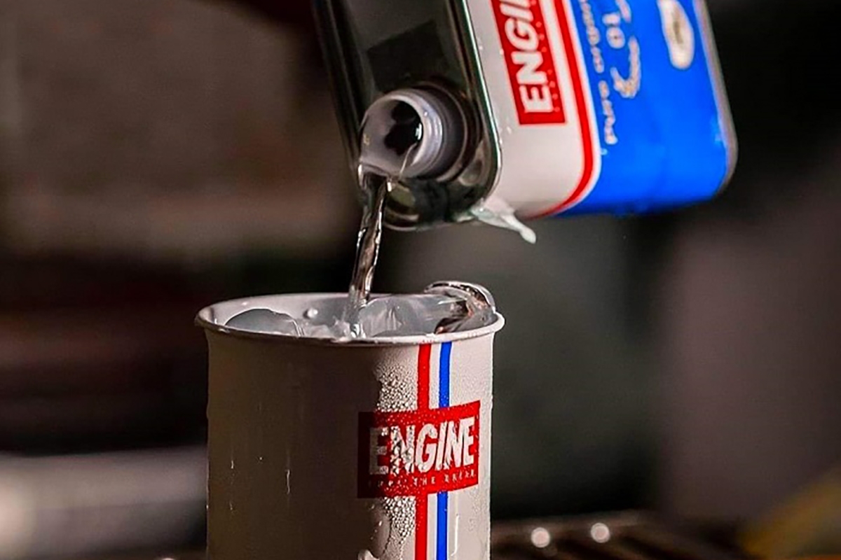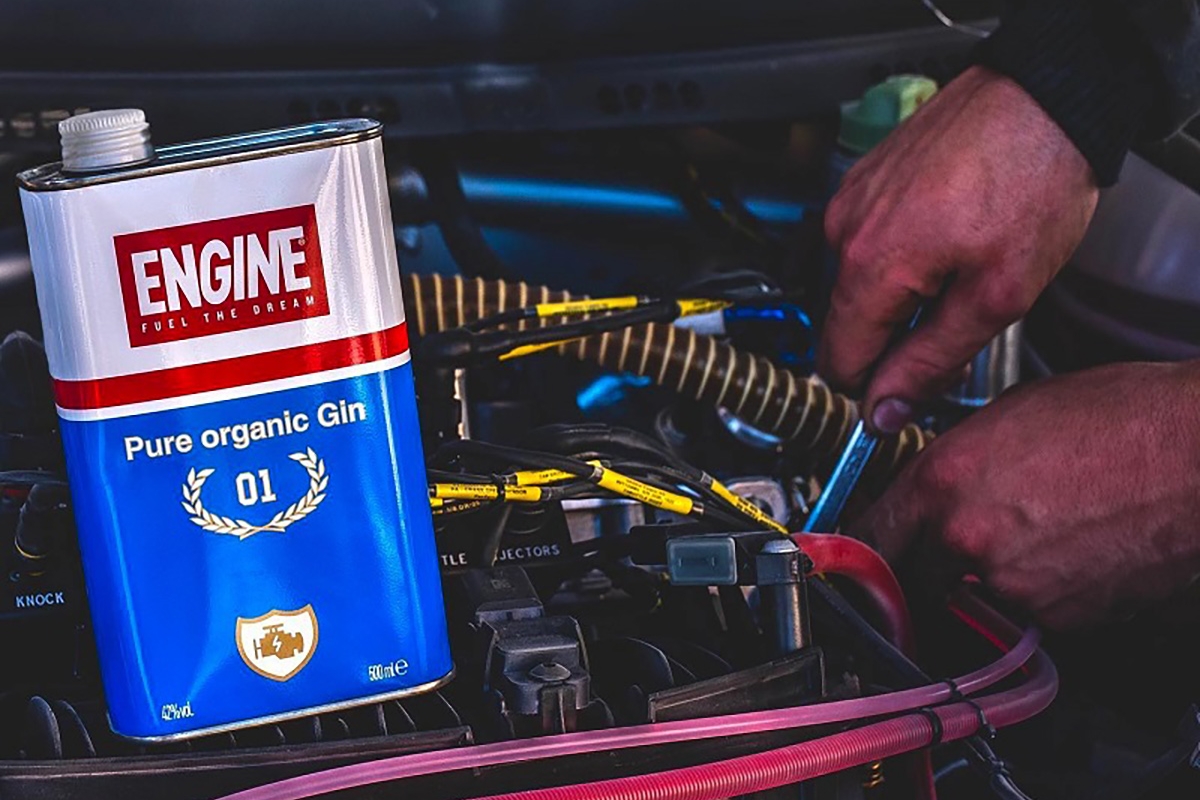 O gin “Engine” é a versão da típica bebida de verão para os clientes petrolheads, produzida na zona norte de Itália. O gin em si presta tributo às bebidas antigas de Itália, mais concretamente de Piemonte, contendo licor à base de sálvia e limão, muito utilizado como digestivos nessa região.