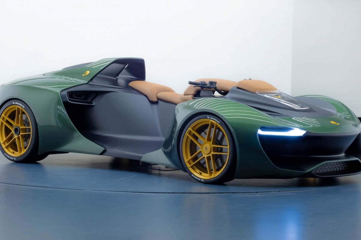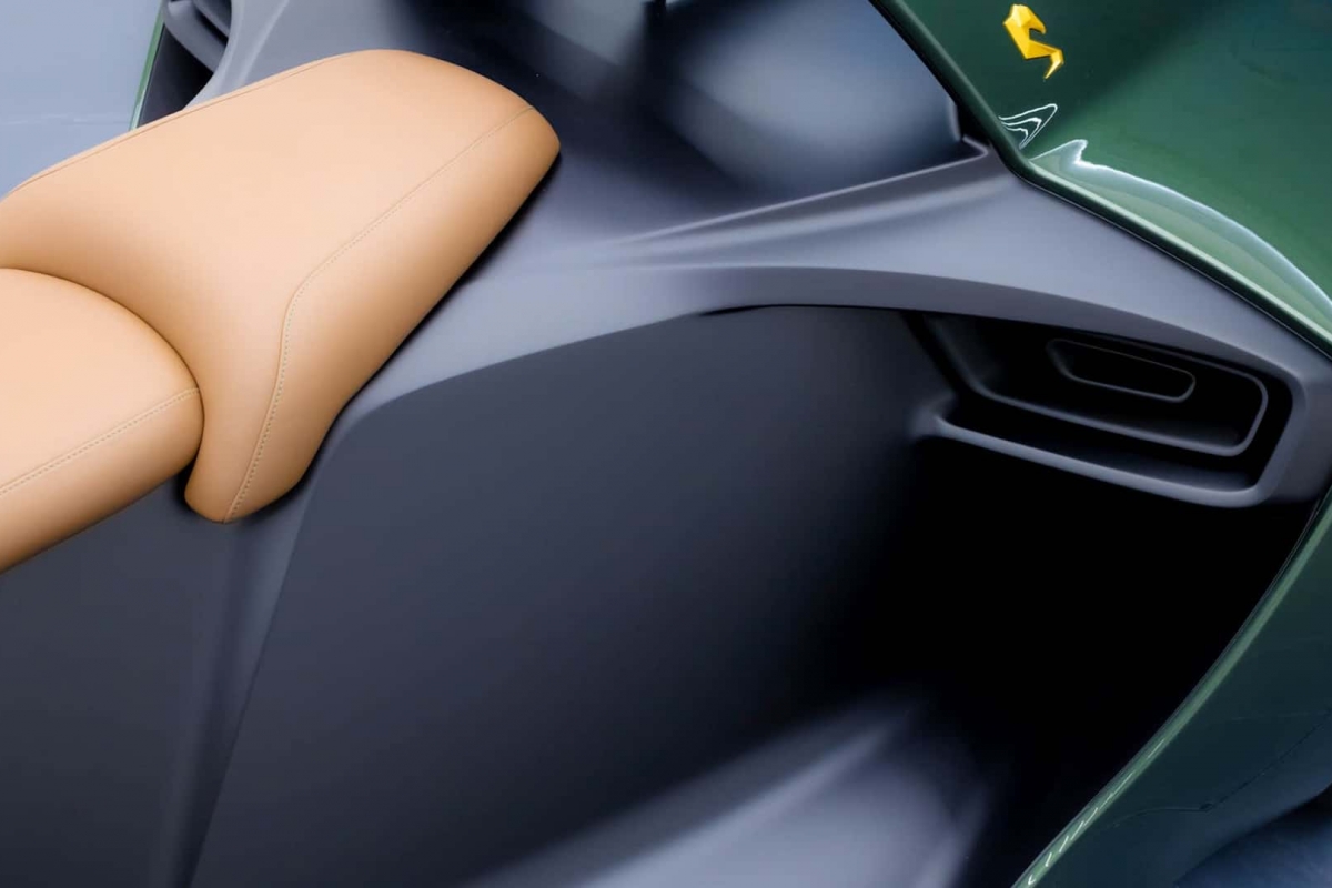 Não tem pedais, sendo que todos os controlos do veículo estão na barra de direção. O seu para-brisas regulável em altura funciona em sincronia com a aerodinâmica ativa escondida na carroçaria. Também não há cintos de segurança – embora, em caso de acidente, ser ejetado possa ser mais seguro do que ficar no quadriciclo, uma vez que não há carroçaria entre si e o ar livre.