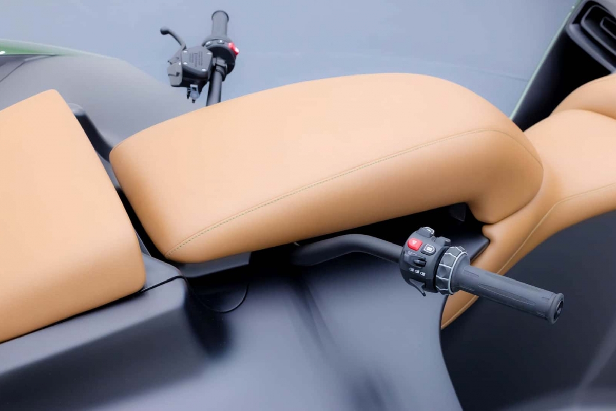 O quadriciclo acomoda dois condutores nos seus bancos em pele macia, estofados no mesmo material das malas Hermès. Engler fabrica o assento especificamente para o cliente. Tem dois ecrãs tácteis – um para a telemática do veículo e outro para o sistema de infotainment com Apple CarPlay.