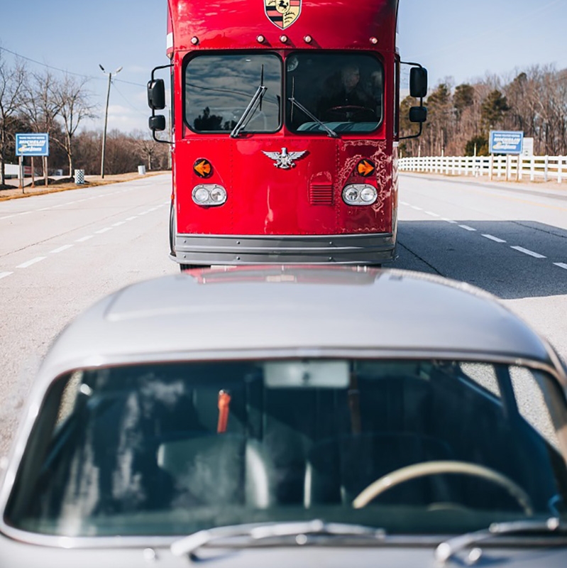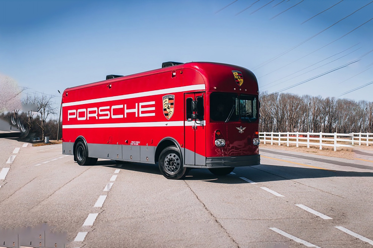 Presente neste artigo está um Gillig Model 590 de 1963, que foi totalmente restaurado em 2016, apresentando agora a decoração das transportadoras da Porsche dos anos 60. Antes do restauro, este Model 590 estava num estado algo degradado, pois esteve vários anos ao abandono.