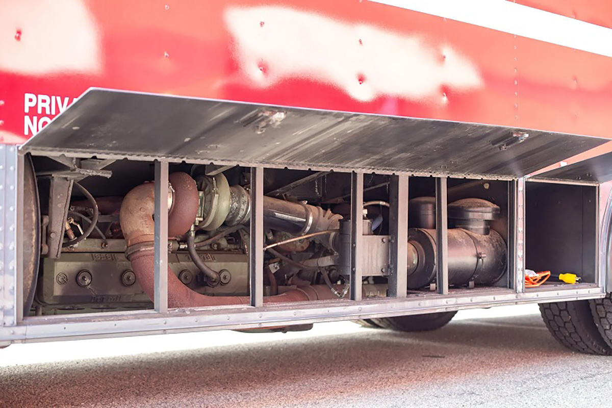 Está equipado com um motor de seis cilindros em linha Detroit Diesel 6-71 a dois tempos, com turbo e compressor volumétrico, de 7,0 litros de cilindrada, que também foi todo reconstruído, acoplado a uma caixa automática Allison.