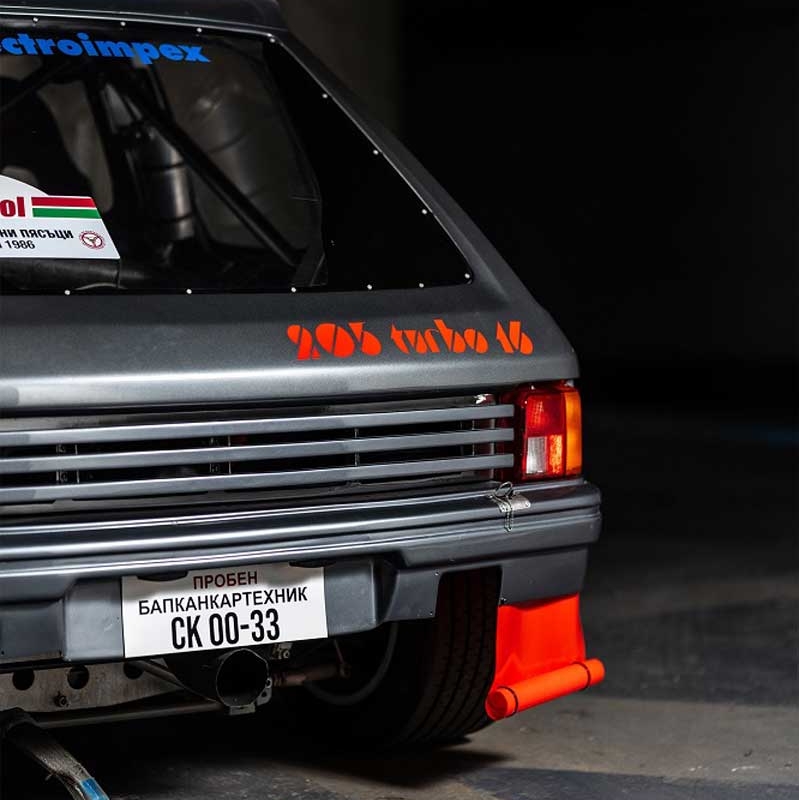 Construído em 1985 como um exemplar de estrada, foi convertido pouco tempo depois para ralis pela Bouhier Engineering, a pedido da equipa búlgara da Balkancar, após esta ter pedido um 205 T16 Evo I à Peugeot Talbot Sport. No entanto, já não havia disponível um exemplar de ralis, sendo que, a única forma de ter um 205 T16 era adquirir um de estrada e convertê-lo, e foi esse o caminho seguido pela equipa.