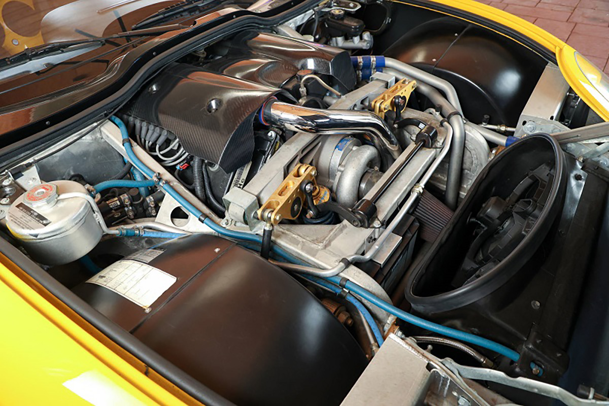 Debaixo do capot, está o motor V8 Oldsmobile L47 Aurora de 4,0 litros, 32 válvulas e dupla árvore de cames em cada cabeça, com uma potência de 324cv às 6500 rpm, e 390Nm de binário às 5000 rpm. O motor está acoplado à caixa manual de seis velocidades ZF do Chevrolet Corvette C5, montada na traseira.