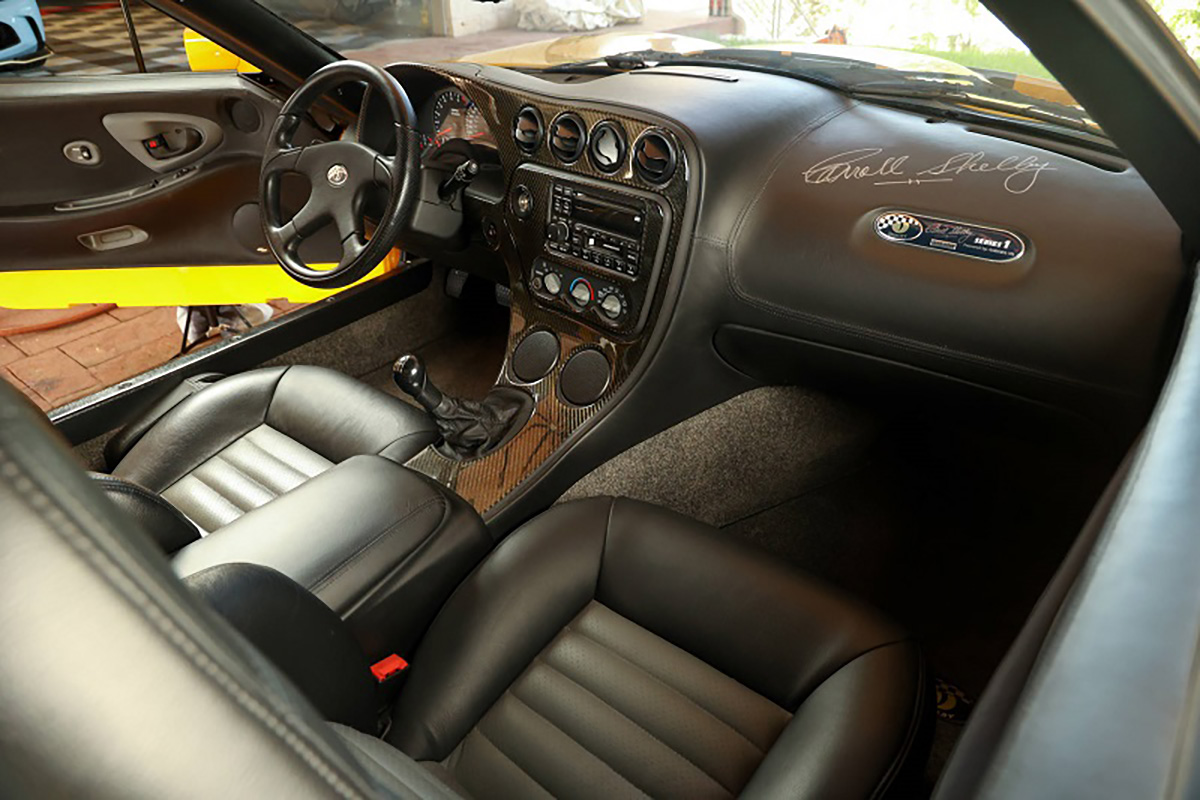 Presente neste artigo, está um Shelby Series 1 muito especial que, além de estar equipado com o compressor volumétrico, tem ainda uma combinação de cores única, não utilizada em mais nenhum exemplar. Este também será um dos últimos exemplares produzidos, devido ao seu número de série CSX 5268. Foi encomendado novo pela Tony Stewart Racing Team e percorreu, até hoje, apenas 1.781 milhas.