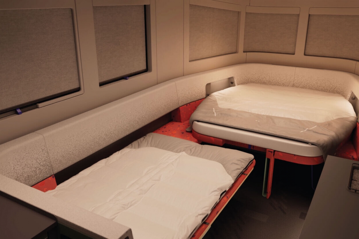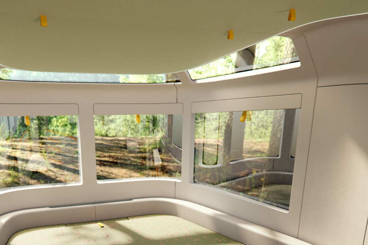 O modelo é espaçoso, podendo acomodar quatro pessoas para dormir. A caravana possui uma dúzia de vidros amplos que banham de luz natural o habitáculo e garantem vistas privilegiadas para a paisagem.