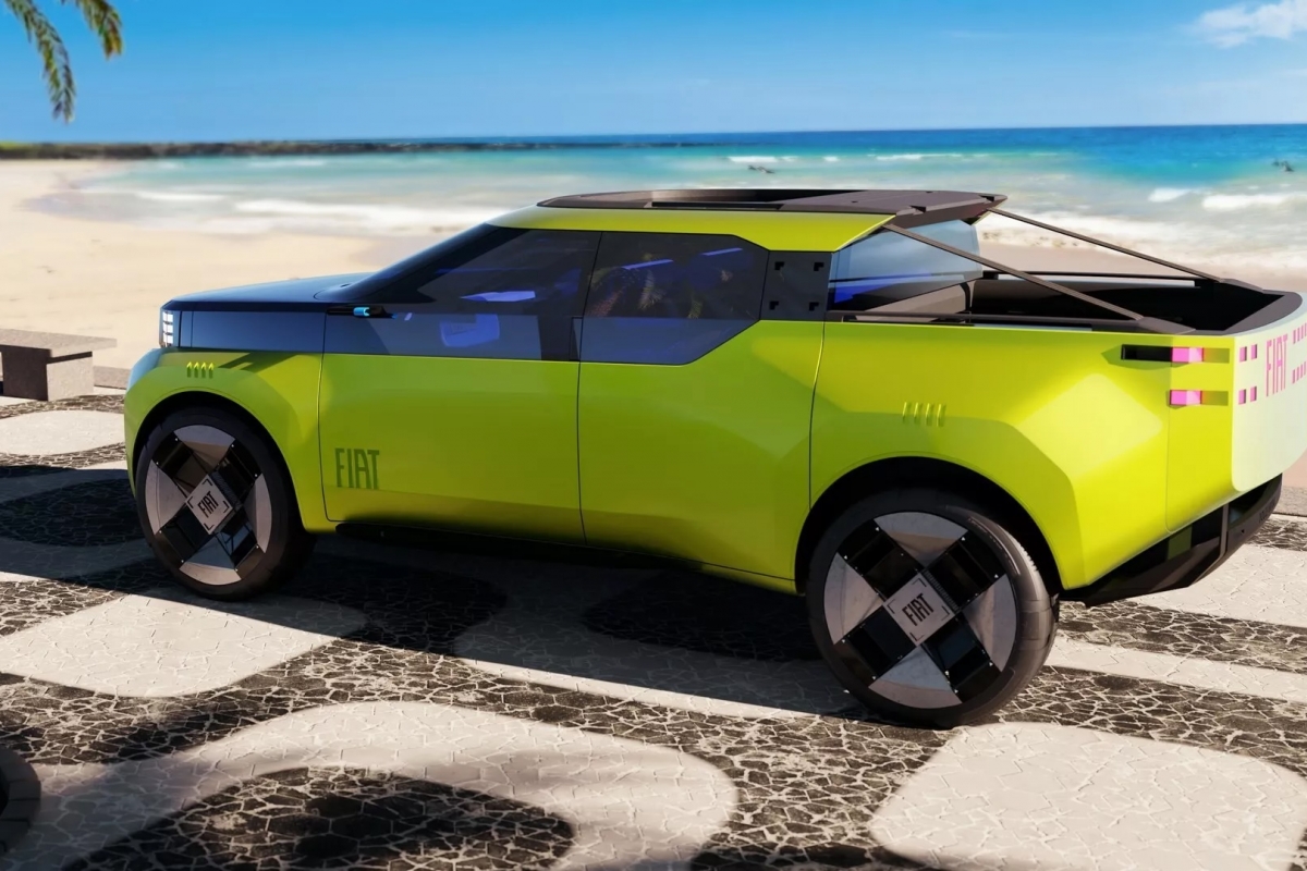 Segue-se um conceito de pick-up. A Fiat Strada é o veículo mais vendido no Brasil e a marca acredita que pode replicar este sucesso a nível global. Tal como o citadino, a pickup tem um formato retro e quadrado e pretende combinar diversão e funcionalidade.
