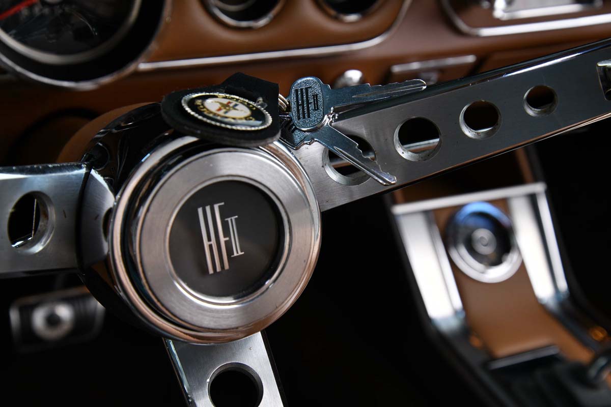 Vários pormenores personalizados estão presentes no veículo, como os logotipos HFII no volante, chaves, nas laterais e nos cintos de segurança. Além deste, tem ainda vários detalhes únicos, como a cor Raven Black, capota branca, interior em castanho claro e os bancos desportivos, que seriam utilizados como protótipos para desenvolver os do Mercury Cougar de 1967, assim como as forras das portas. Mecanicamente, tem uma caixa de direcção mais rápida, que não estava disponível em mais nenhum Mustang GT.