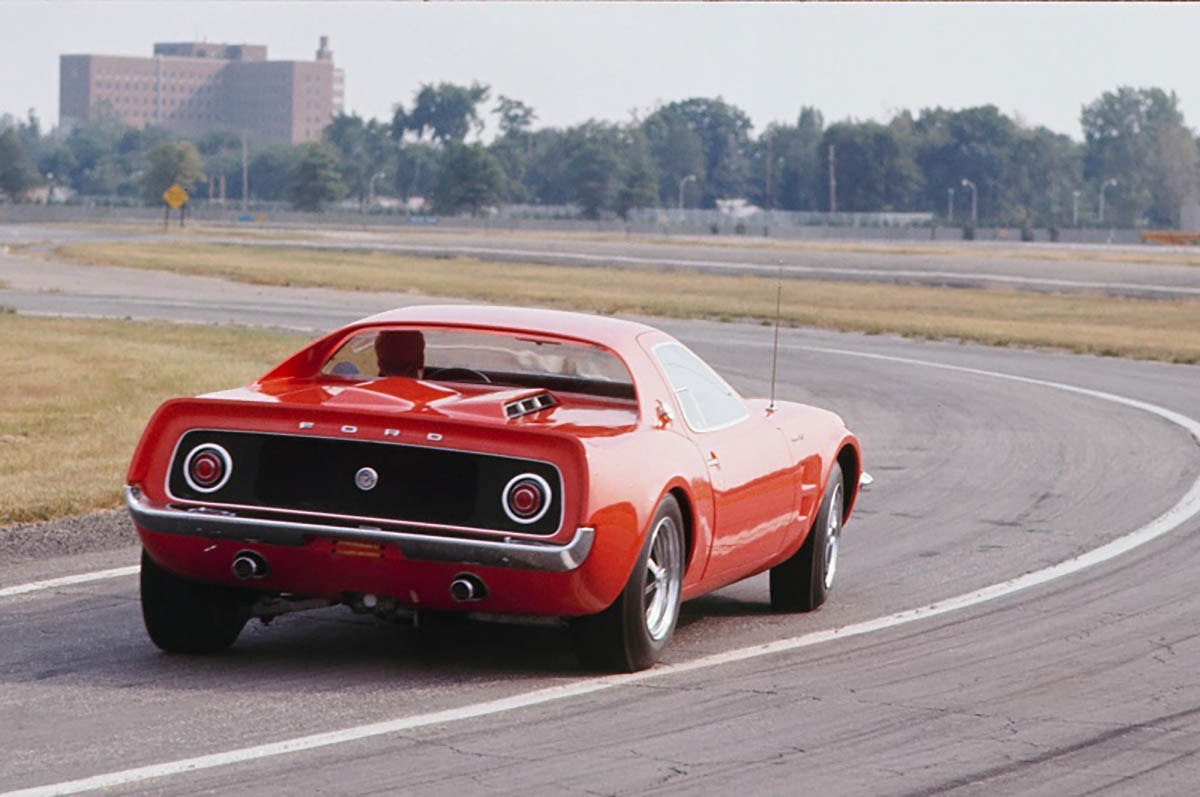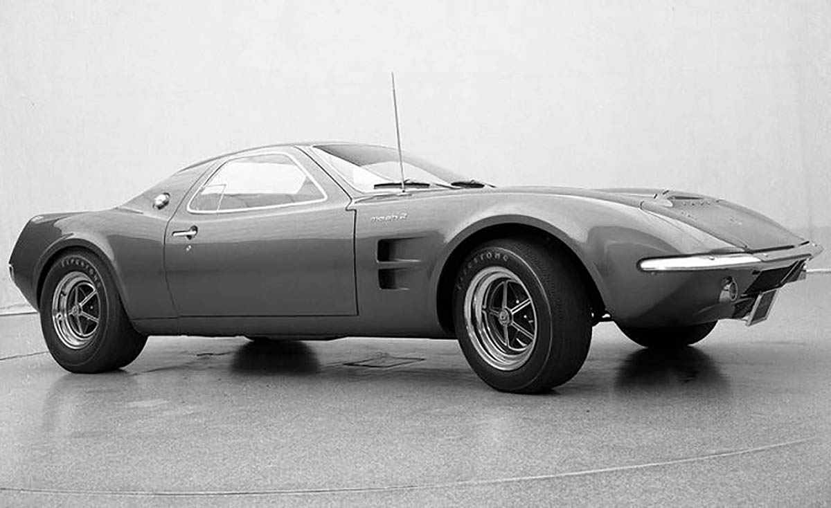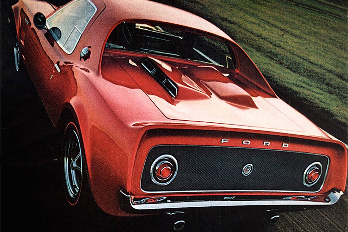 Este protótipo foi apresentado no Salão de Chicago de 1967 e incorpora bastantes componentes do Mustang tradicional, como a suspensão frontal, os travões e o motor. O chassis também foi herdado do Mustang, mas era mais curto, principalmente na frente, onde foi adicionado um subchassis tubular. Tem um design que misturava o espírito de competição europeu com o “músculo” americano. Tem um capot bastante longo e as proporções de um Mustang, apesar da diferente colocação do motor. Não era propriamente uma ideia descabida, já que a General Motors apresentou vários Corvette de motor central, dando os seus frutos, pois em 2019 a Chevrolet apresentou o novo Corvette com motor central. Este protótipo foi produzido pela Kar Karft, de Brighton, Michigan.