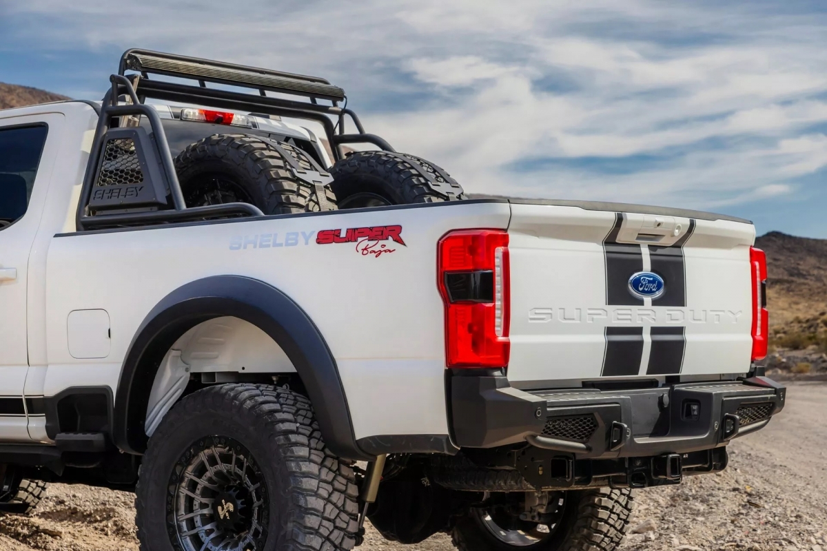 A pick-up vem muito bem equipado, uma vez que possui o pacote Ultimate da Lariat. A potência provém de um motor turbodiesel Power Stroke de 6,7 litros. A Shelby não mencionou a potência, mas o motor produz normalmente 475 CV e 1.422 Nm de binário. Pode-se optar por uma versão de alta potência com 500 CV 1.625 Nm de binário.