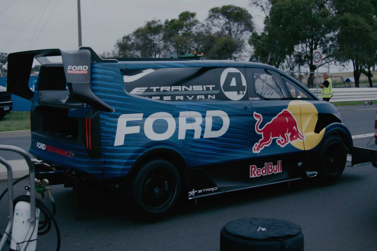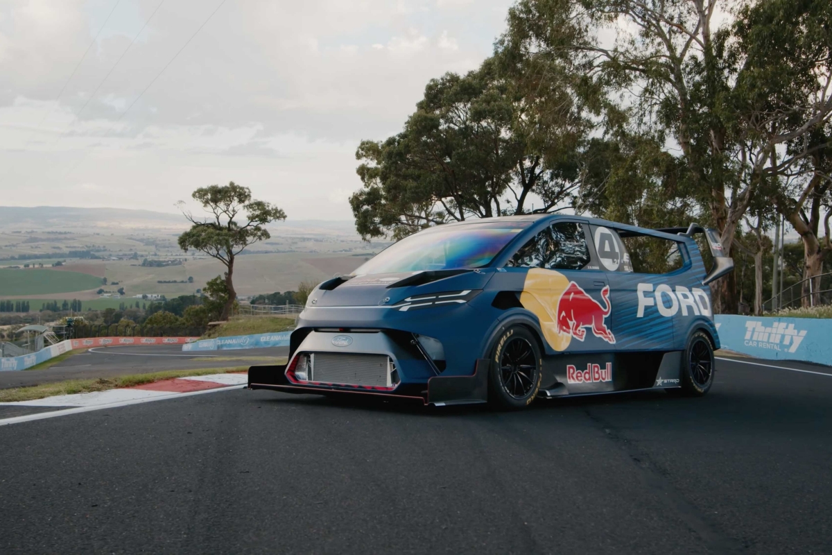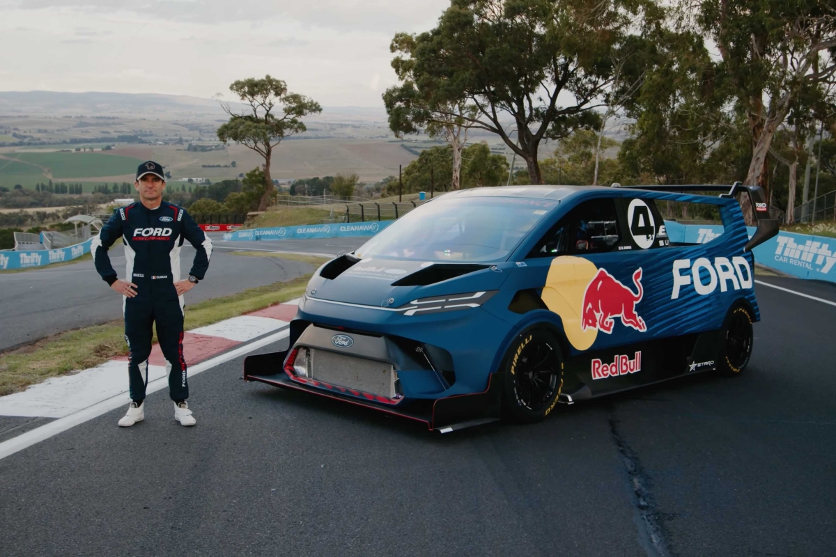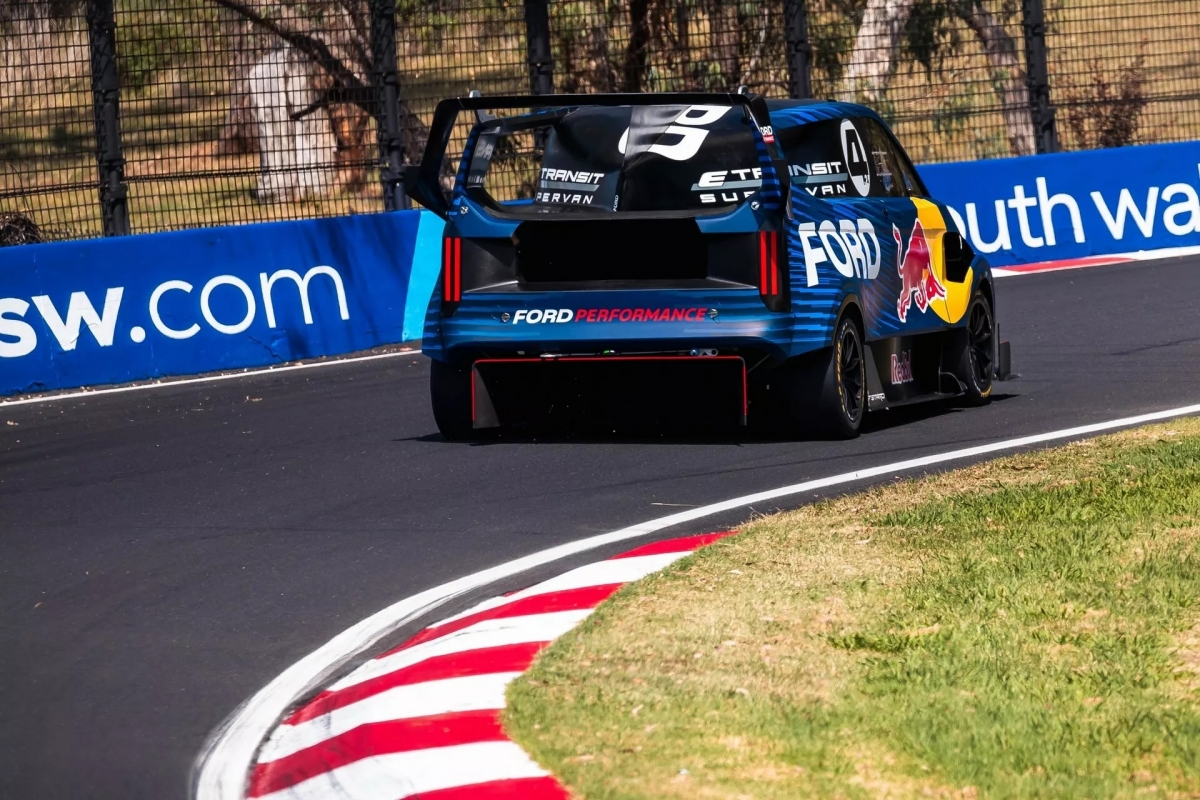 A SuperVan 4.2 é diferente de tudo o que já percorreu a pista de corridas mais famosa da Austrália. Embora pese mais de 1.800 kg, é alimentada por três motores eléctricos com uma potência combinada de 1.400 CV. O design exterior radical também lhe permite produzir 1.995 kg de “downforce” a 242 km/h. Dumas conduziu o derradeiro Ford na Rampa Internacional de Pikes Peak do ano passado e quase conquistou a vitória absoluta, estabelecendo um tempo de 8:47.682.