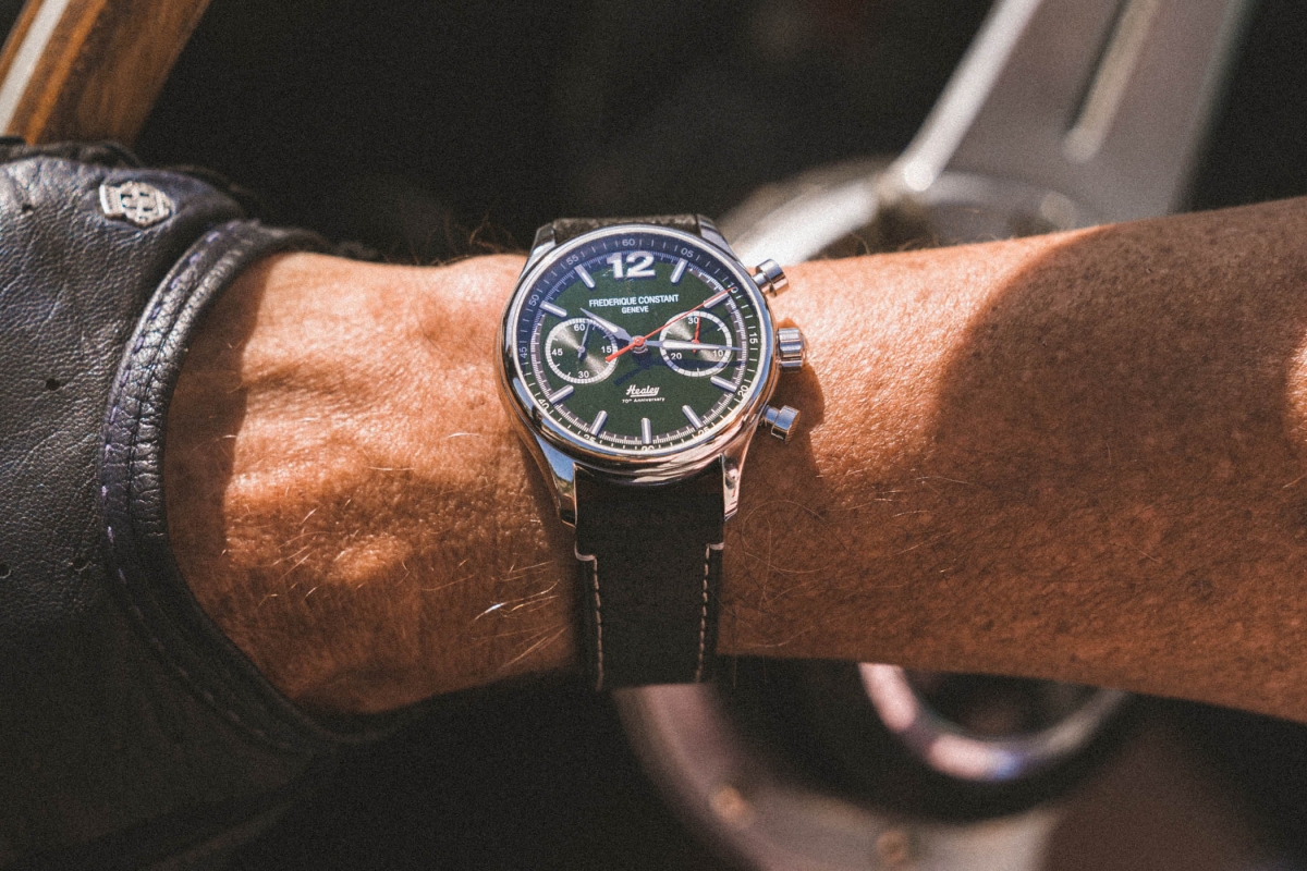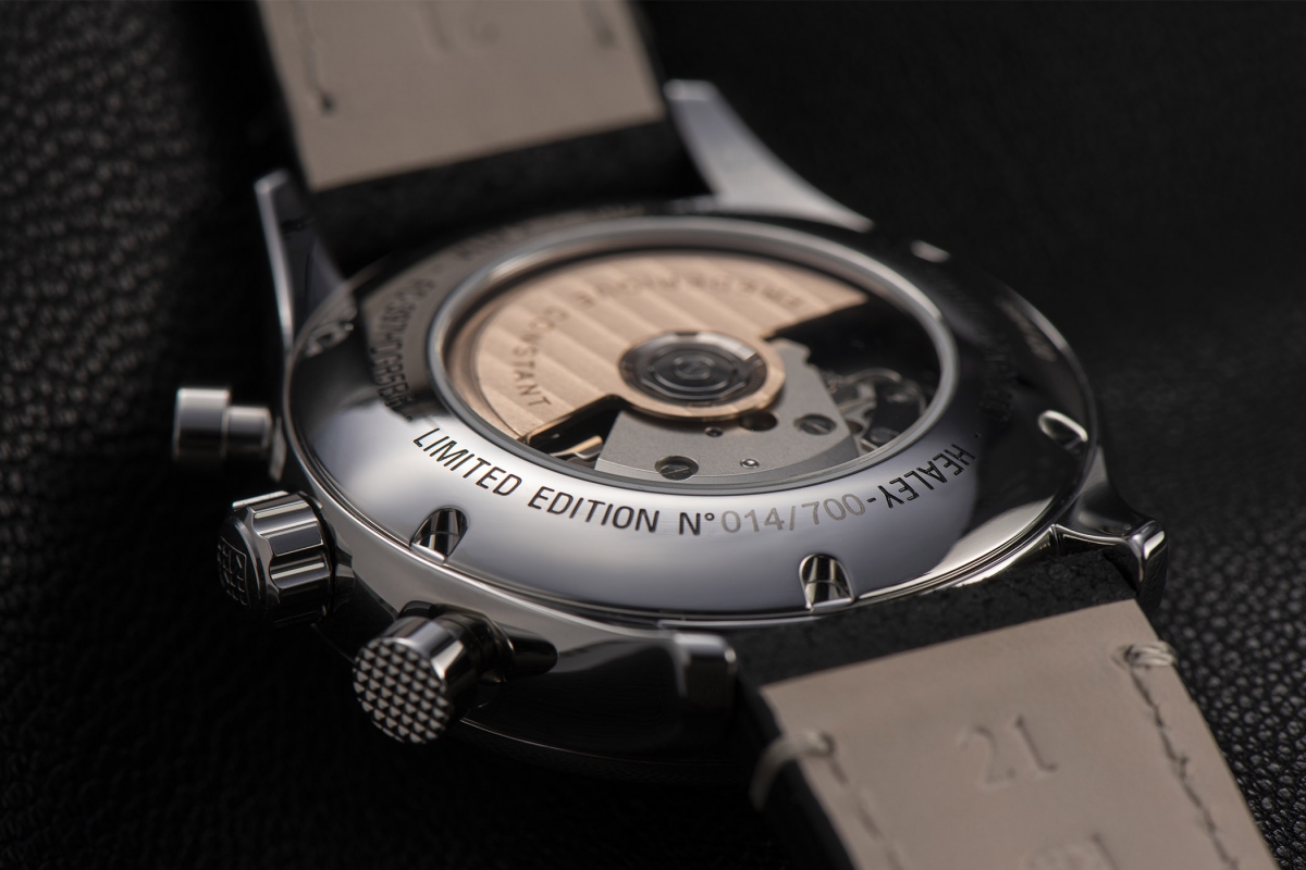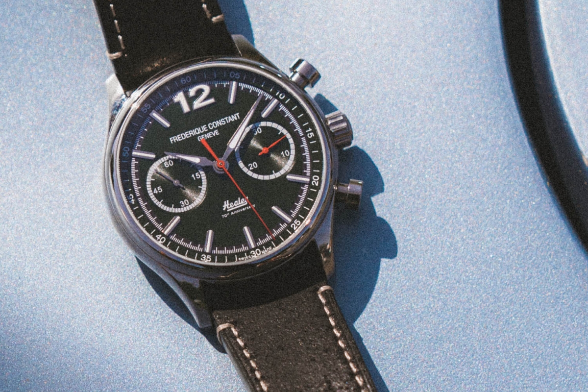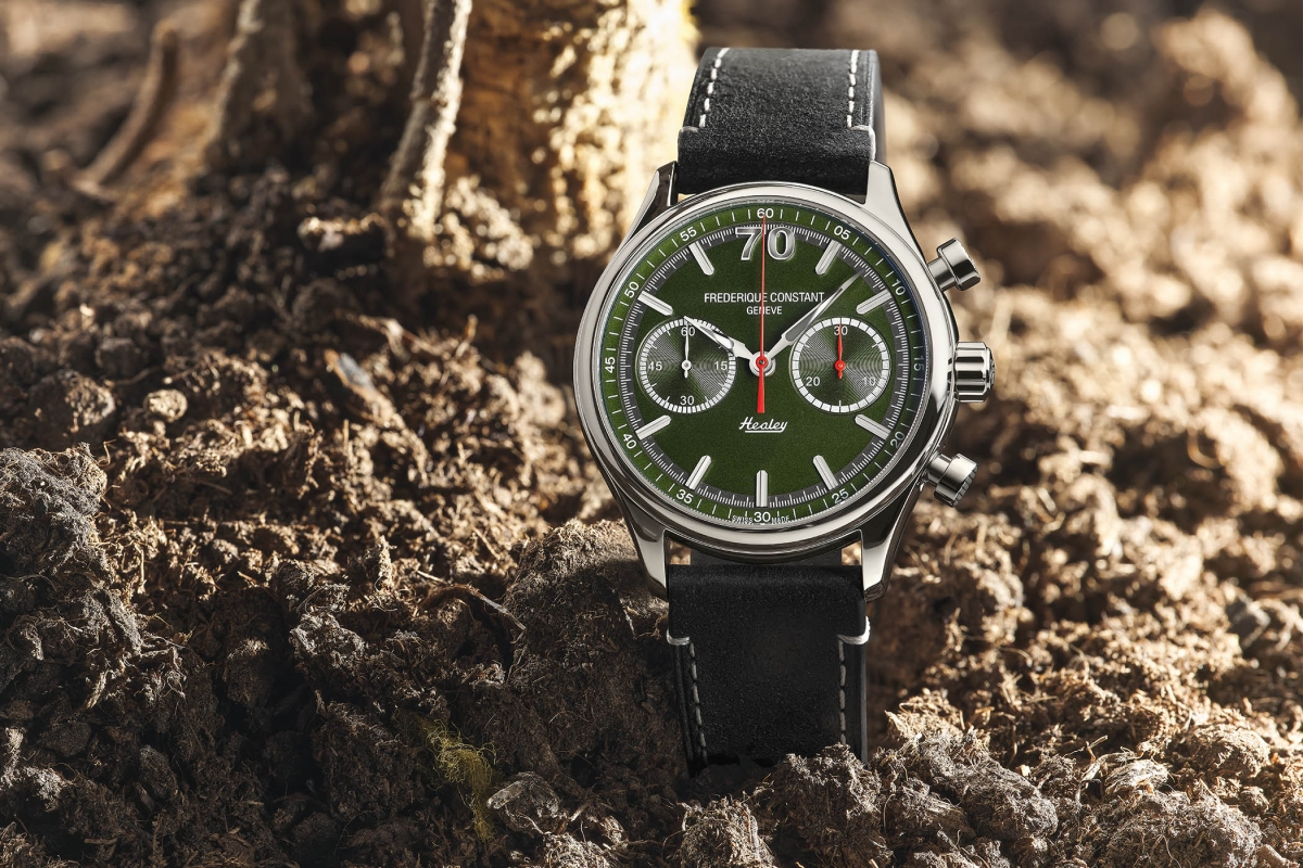 Em 2022, a Frederique Constant celebra o 70º aniversário da Austin-Healey, um parceiro de longa data. Para assinalar esta ocasião, o seu novo cronógrafo mecânico, o Vintage Rally Healey Chronograph Automatic, adoptou a cor “British racing green”, usada no lendário automóvel clássico com a matrícula NOJ393. Com um mostrador bicompax e dois ponteiros vermelhos iguais aos que se encontram nos carros de corrida, este cronógrafo é produzido em duas versões: a primeira, limitada a dez unidades com o número 70 visível ao meio-dia, e a segunda versão de 700 exemplares, com o número “12” no seu lugar habitual.