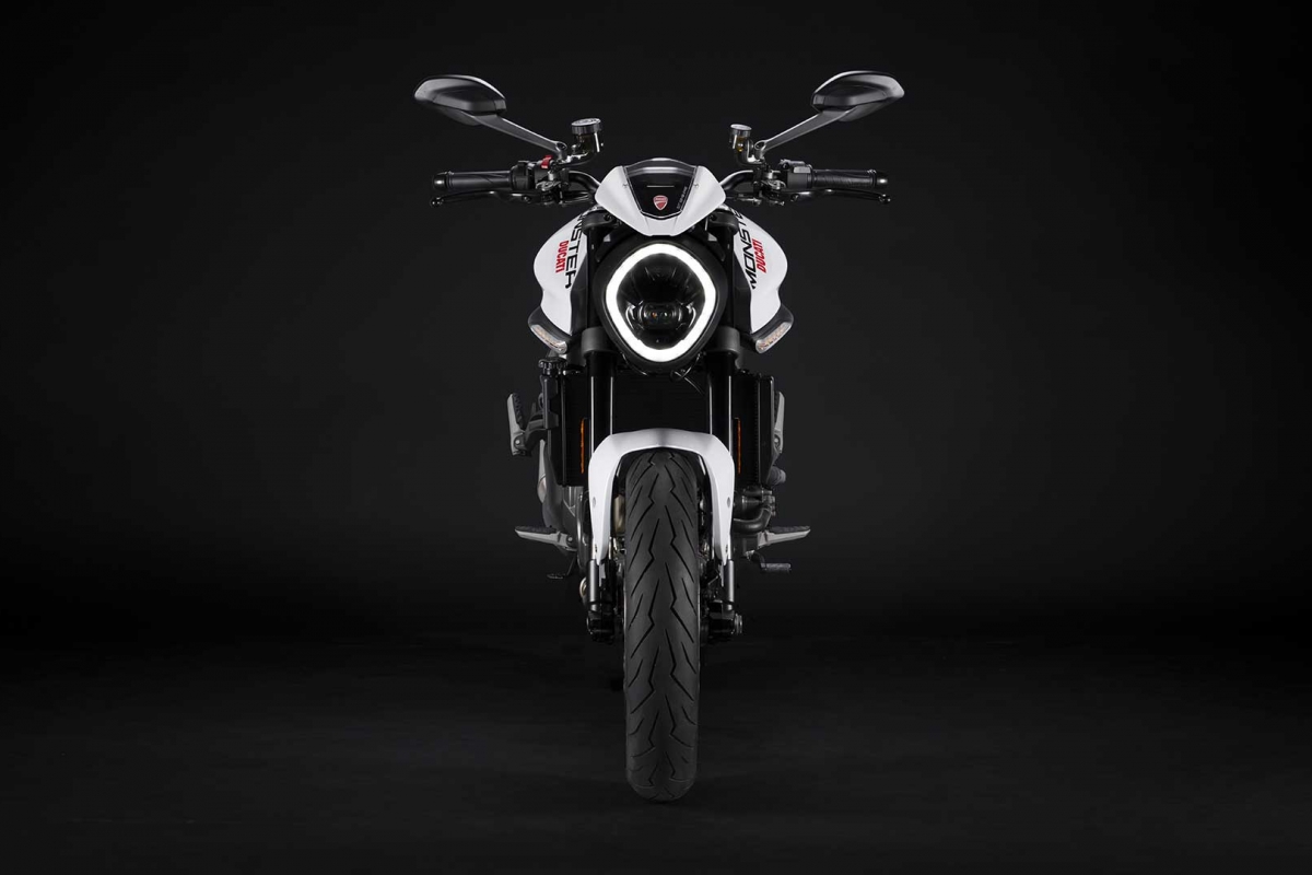 Ideal para aqueles que abordam o mundo das duas rodas pela primeira vez, bem como para motociclistas experientes, a Monster combina dimensões compactas e leveza numa fórmula moderna que renova o conceito de naked desportiva inventado pela Ducati. Performance de alto nível, sempre controlável graças à eletrónica de vanguarda, é combinada com um estilo moderno e elegante. Ao mesmo tempo, a Monster retém o ADN da primeira geração de 1993: o motor Testastretta 11° combinado com um quadro que segue os conceitos das Superbike, o quadro em alumínio Front Frame inspirado pela Panigale V4. Tudo o que precisa de ter para se divertir com a sua moto.