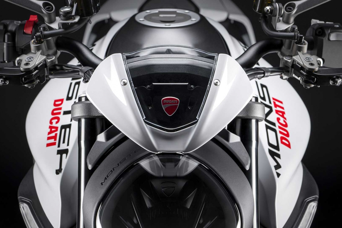Compacta e leve, a naked desportiva de Bolonha incorpora a essência da Ducati numa fórmula que garante a máxima diversão de condução. A gama de cores da Monster e da Monster Plus é enriquecida com o novo esquema de cores Iceberg White.A Monster está disponível por 12.645€ (13.045€ para a versão Plus). Estarão disponíveis no novo esquema de cores Iceberg White em todos os vendedores autorizados Ducati, a partir de junho de 2023.