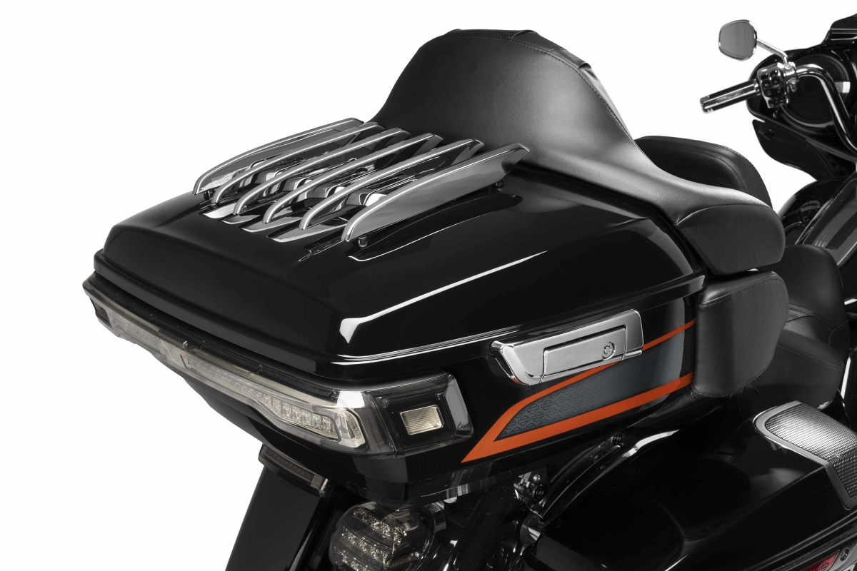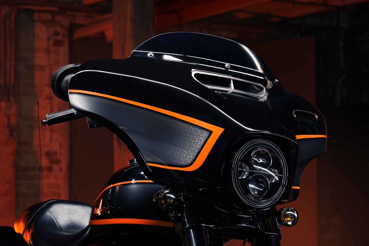 O esquema de pintura Apex apresenta um contorno gráfico no depósito de combustível que reproduz a forma do depósito da lendária moto de competição flat track Harley-Davidson XR750. Nos modelos com carenagem, o gráfico retrocede para alinhar com o gráfico do depósito e continua com um ângulo que sugere velocidade. As linhas do para-lamas dianteiro conectam-se visualmente às linhas dos painéis laterais e dos alforjes, criando um efeito fluido. Quando vista de perfil, a moto parece estar em movimento.