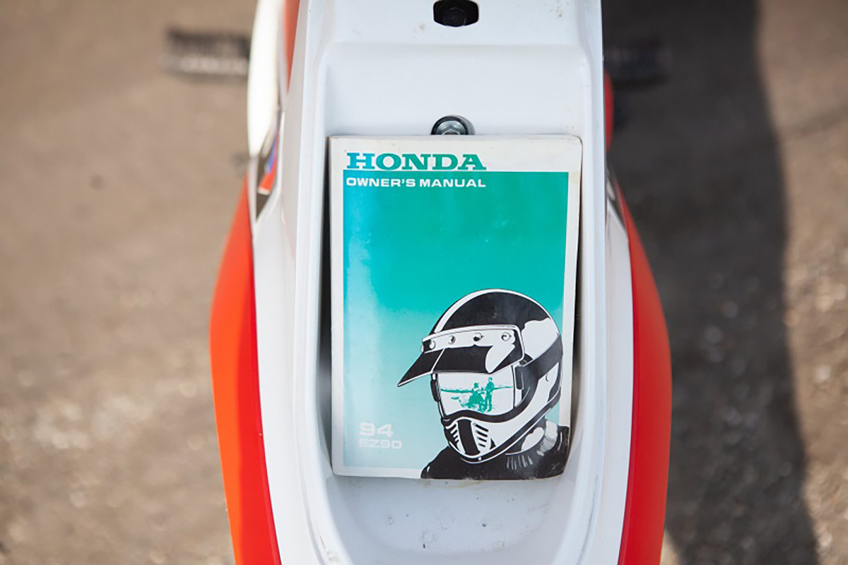 Presente neste artigo está uma Honda Cub EZ90 de 1994 num excelente estado de conservação, com as cores mais tradicionais, branco e vermelho, e o logotipo da Elf. A moto faz-se acompanhar pelo seu manual original e ainda pelas ferramentas da marca.
