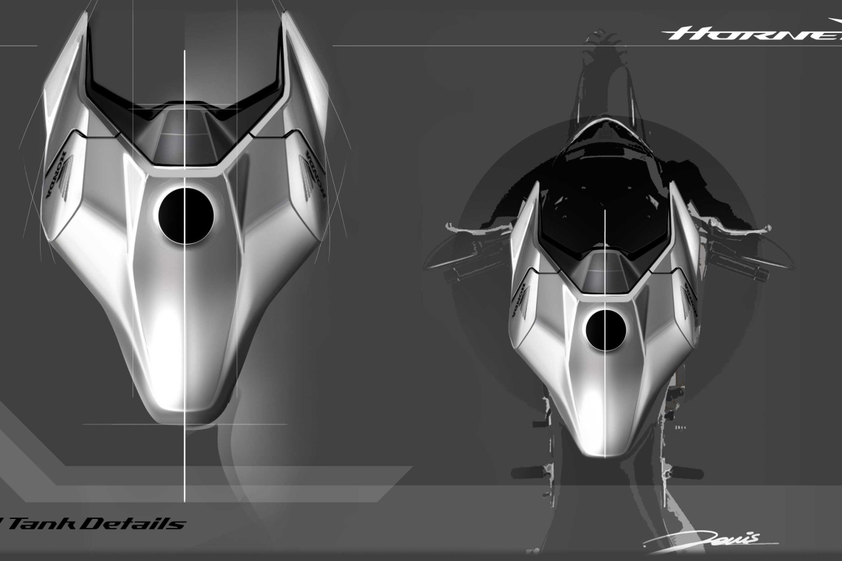 “A filosofia de design da Honda é criar algo puro e funcional, de uma forma simples e descomplicada – modelos que são ao mesmo tempo simples, bonitos e emocionalmente atraentes. Os últimos esboços mostram como o design da nova Hornet promete agilidade, dinamismo e leveza graças às suas proporções esguias, traseira pontiaguda e linhas muito distintas. Tudo isto permite criar um novo visual muito compacto, mas com caraterísticas de tensão e agressividade da frente para a traseira, o que nos revela a toda a verdadeira inclinação desportiva da Hornet”, afirmou Giovanni Dovis, Designer, Honda R&D Europe.