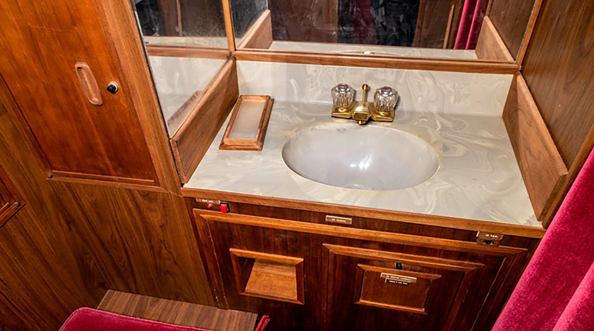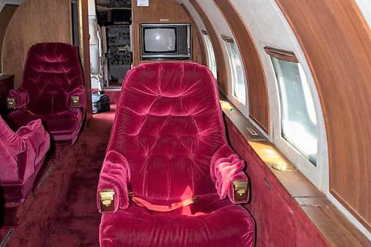 No interior, a cabine apresenta painéis de madeira, bancos estão estufados com veludo vermelho e detalhes em dourado. Existe um sistema de entretenimento a bordo escondido num armário de madeira que contém uma televisão, um leitor de vídeo cassete que podiam ser controlados em cada banco. O jacto também vem equipado com uma cozinha e contém armazenamento e uma área de preparação de refeições completa com um micro-ondas e um bar completo.
