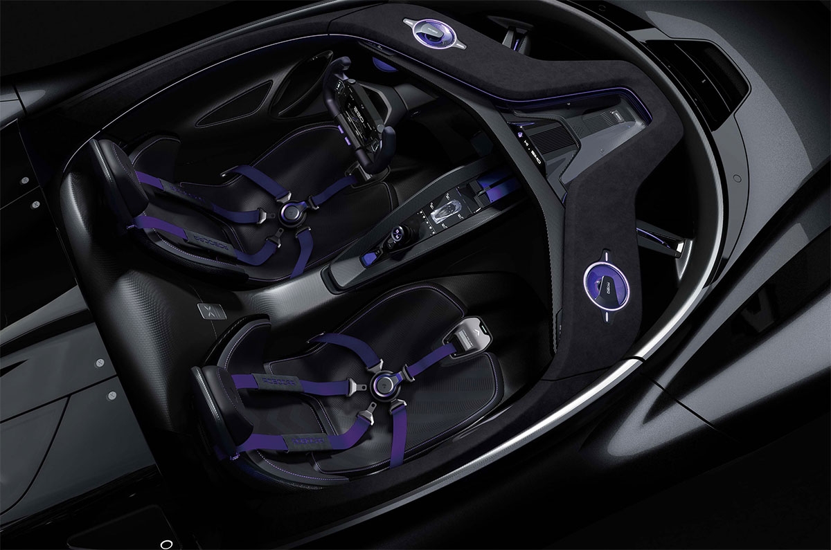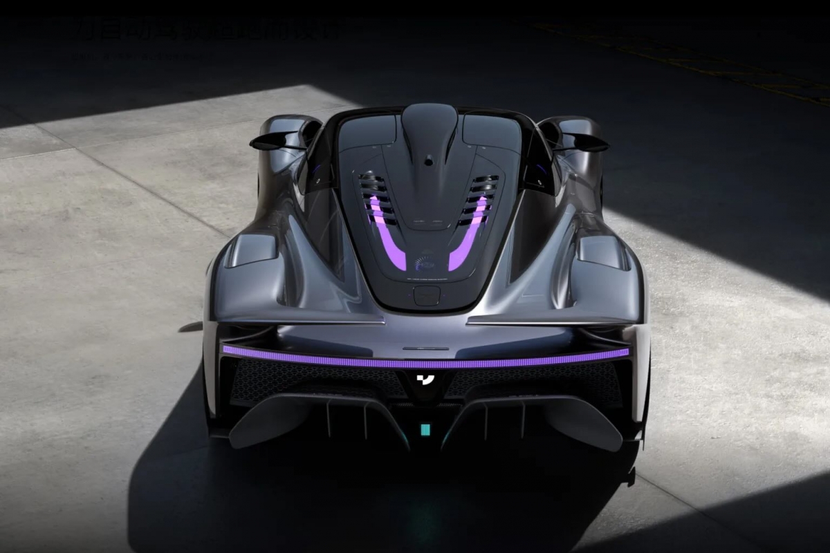 A aerodinâmica do Robo X foi objeto de um grande trabalho para garantir a estabilidade e gerar muita força descendente para o desempenho. O efeito global é bastante bem sucedido e conseguido, mas a entrada de ar no tejadilho e o “compartimento do motor” fazem-nos desejar ter um verdadeiro V12 ou V8 sobrealimentado debaixo do capô. Mas a principal atração – pelo menos para os geeks – é a capacidade de condução autónoma a alta velocidade que seria possível graças à utilização da tecnologia de condução autónoma Apollo desenvolvida pela Baidu. A parceria entre estes dois gigantes chineses, a Geely e a Baidu, confere credibilidade a este carro aparentemente fantasioso.