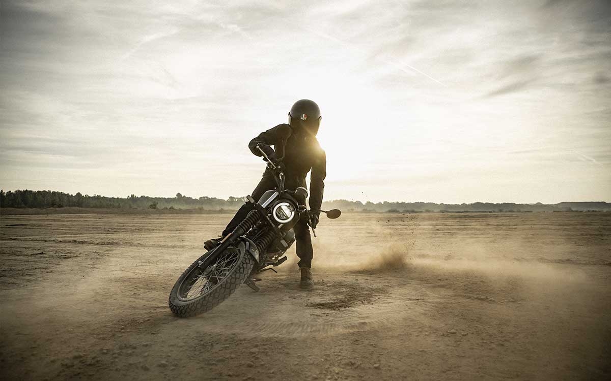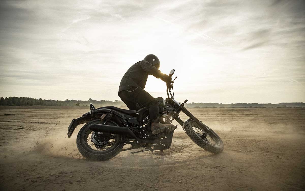 Autêntica filosofia Custom em versão Sport. Look desportivo com guiador plano e um design com cores mais arrojadas para os mais rebeldes. A nova Rockster Flat reúne todas as características principais e atuais de uma autêntica moto Custom com detalhes new school, combinando estilo e conforto, tudo por um preço de 2899€.