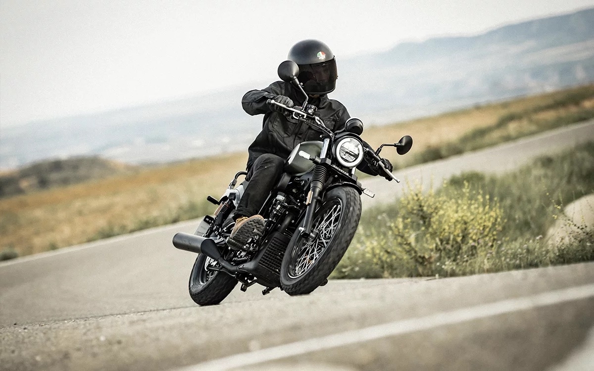 Incorpora um guiador clássico “corno de vaca”, encosto traseiro acolchoado para o passageiro e poisa-pés com plataforma para um conforto 100% Custom.