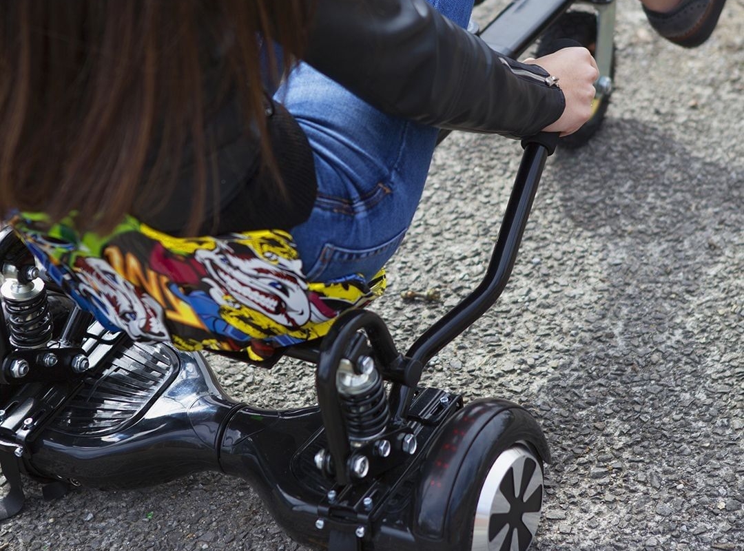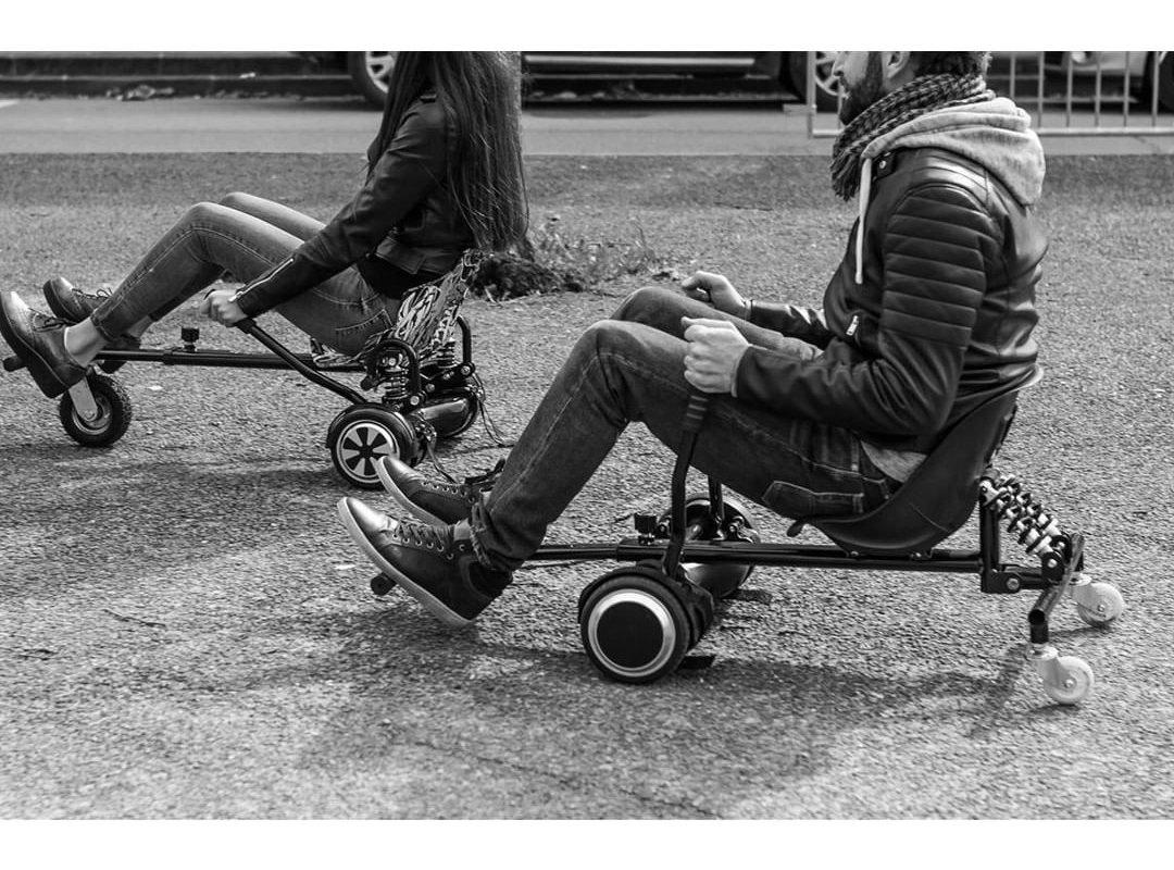 O Kart Pilot Black é um equipamento que se fixa ao hoverboard para transformar este dispositivo num HoverKart, permitindo tirar todo o poder de mobilidade do hoverboard para conduzir sentado como se fosse um kart.
