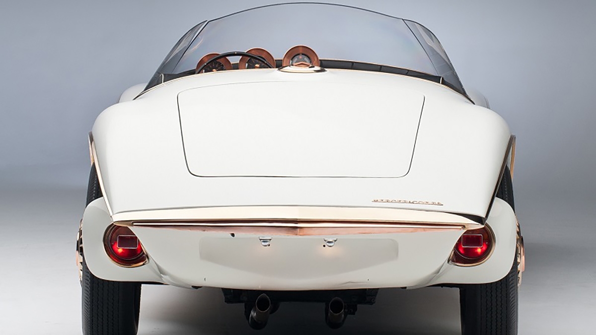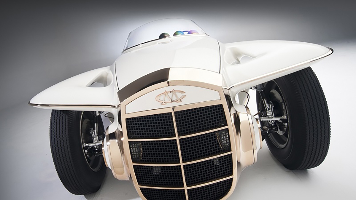 Existe uma particularidade única neste automóvel, que são os faróis escamoteáveis que não ficam escondidos na maneira mais convencional, mas sim na grelha, abrindo e fechando lateralmente. Para colmatar o design exterior muito do cobre ficou exposto na sua cor natural, tendo apenas um verniz para evitar a descoloração, incluindo os tampões das jantes de 16”, que contrasta com a cor Pearl White, o para-brisas curvo em acrílico e o interior estufado em pele preta.