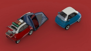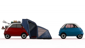 Pegando no Microlino 2.0, o microcarro elétrico construído pela suíça Micro Mobility Systems (MMS), o designer de produto Ozan Kayikci concebeu o Microlino Camper, projeto de uma tenda de campismo e cozinha portátil para este “palmo e meio de viatura” de 2,43 metros de comprimento e 1,50 metros de largura.