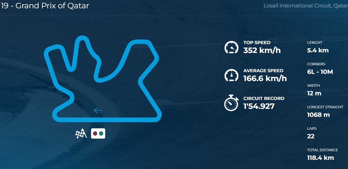 Assim, a penúltima prova da época realiza-se no Losail International Circuit, no Qatar e antecede a derradeira prova, o Gran Premio Motul de la Comunitat Valenciana, Circuit Ricardo Tormo, dias 24 a 26 de novembro.