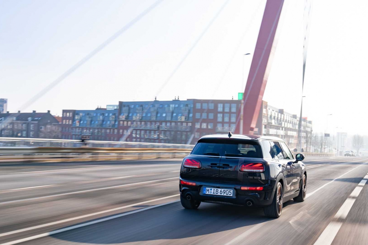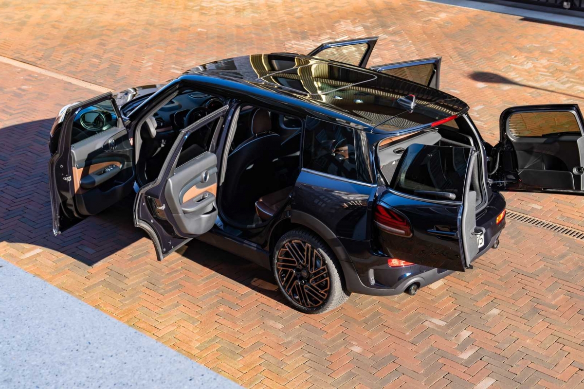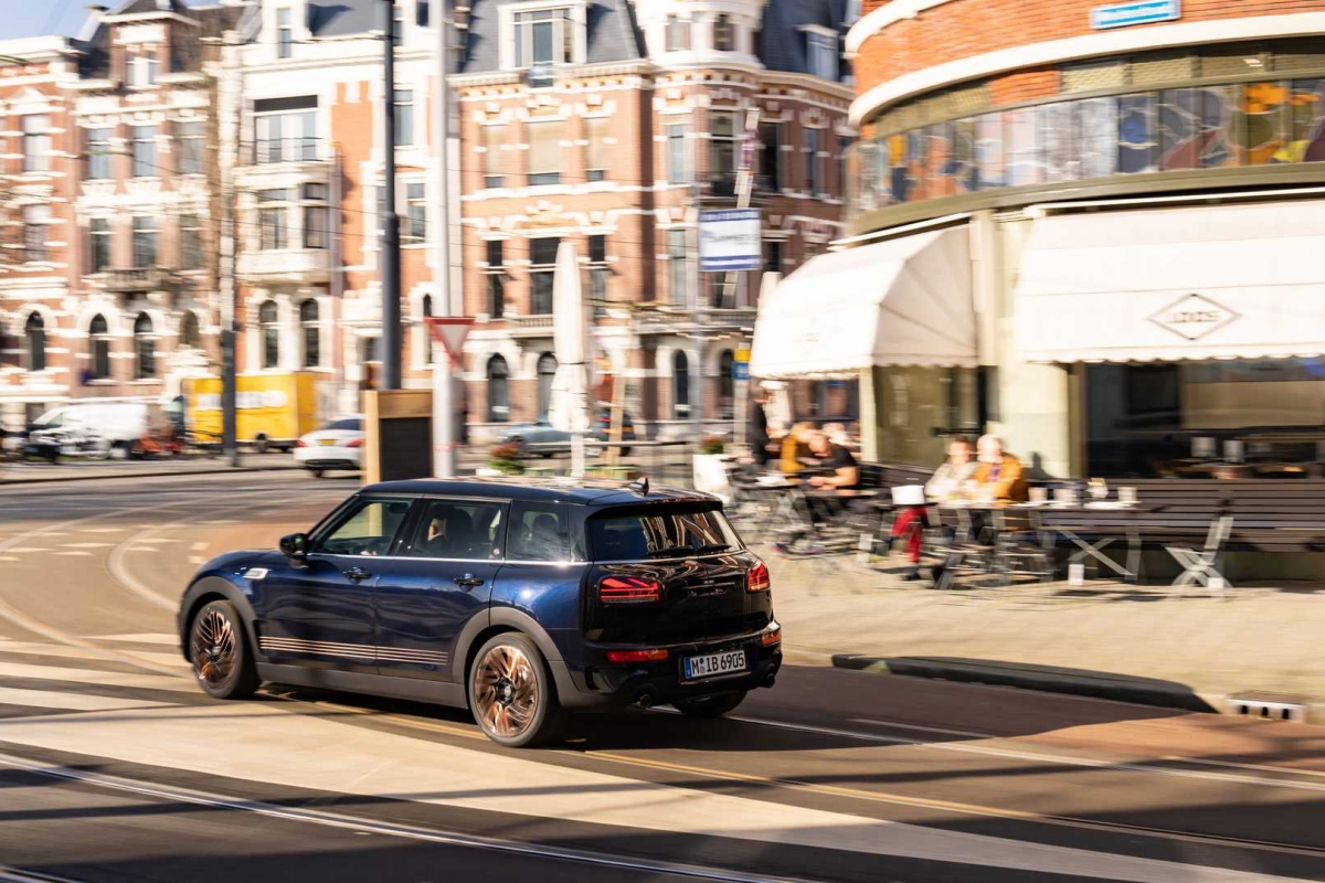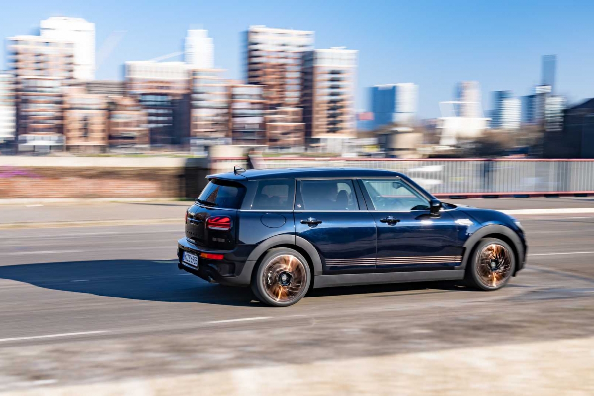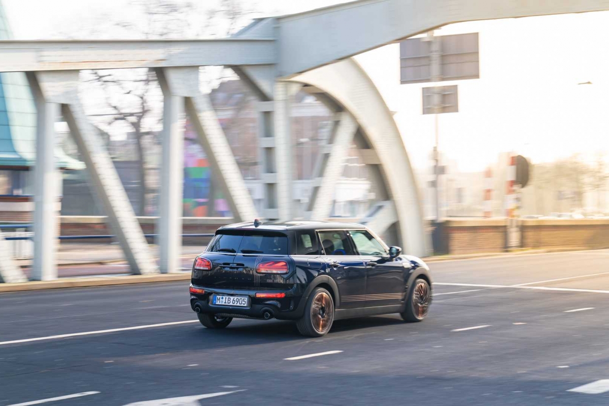 Finalmente, umas jantes de design específico e dois tons, um dos quais, a mesma cor cobre do lettering. Passando ao habitáculo, o mesmo toque de distinção que se anuncia no exterior, com o Clubman ‘Final Edition’ a optar por bancos desportivos revestidos a couro Maroon escuro, com aplicações em tecido e costuras contrastantes em azul, a que se junta, já na soleira das portas, o emblema específico desta edição especial, bem como um volante em couro Nappa. A completar o ambiente, mais elementos em Shimmer Copper, tapetes específicos, além de mais uma inscrição, aplicada no frontal do tablier e já do lado do passageiro, com o número da unidade em presença.