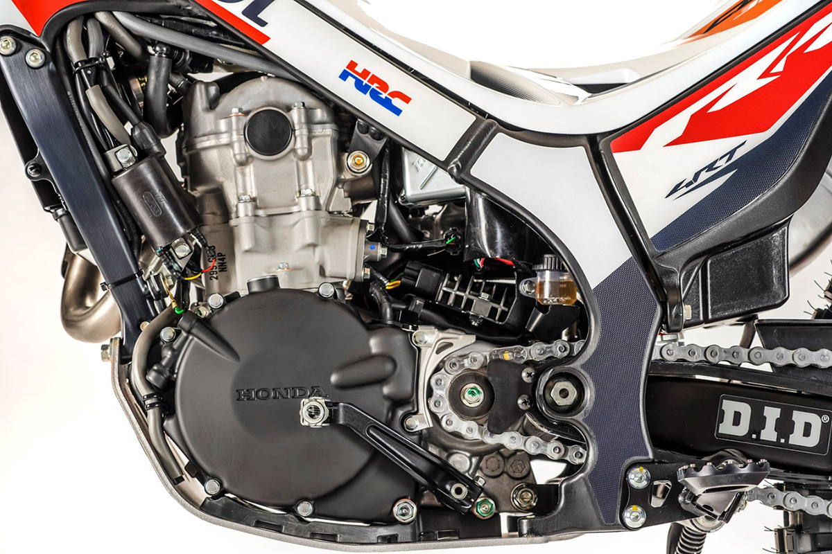 Por outro lado, a cambota agora tem mais inércia para obter ainda maior progressividade. Isto resultou numa melhoria significativa nas gamas de baixa e média rotação, com performances mais próximas das motos que participam no Campeonato Mundial. Outra caraterística digna de nota é a interação perfeita entre o acelerador e a transmissão final, um fator primordial nas provas de trial, onde a suavidade do sistema PGM-FI de injeção eletrónica é de primordial importância.
