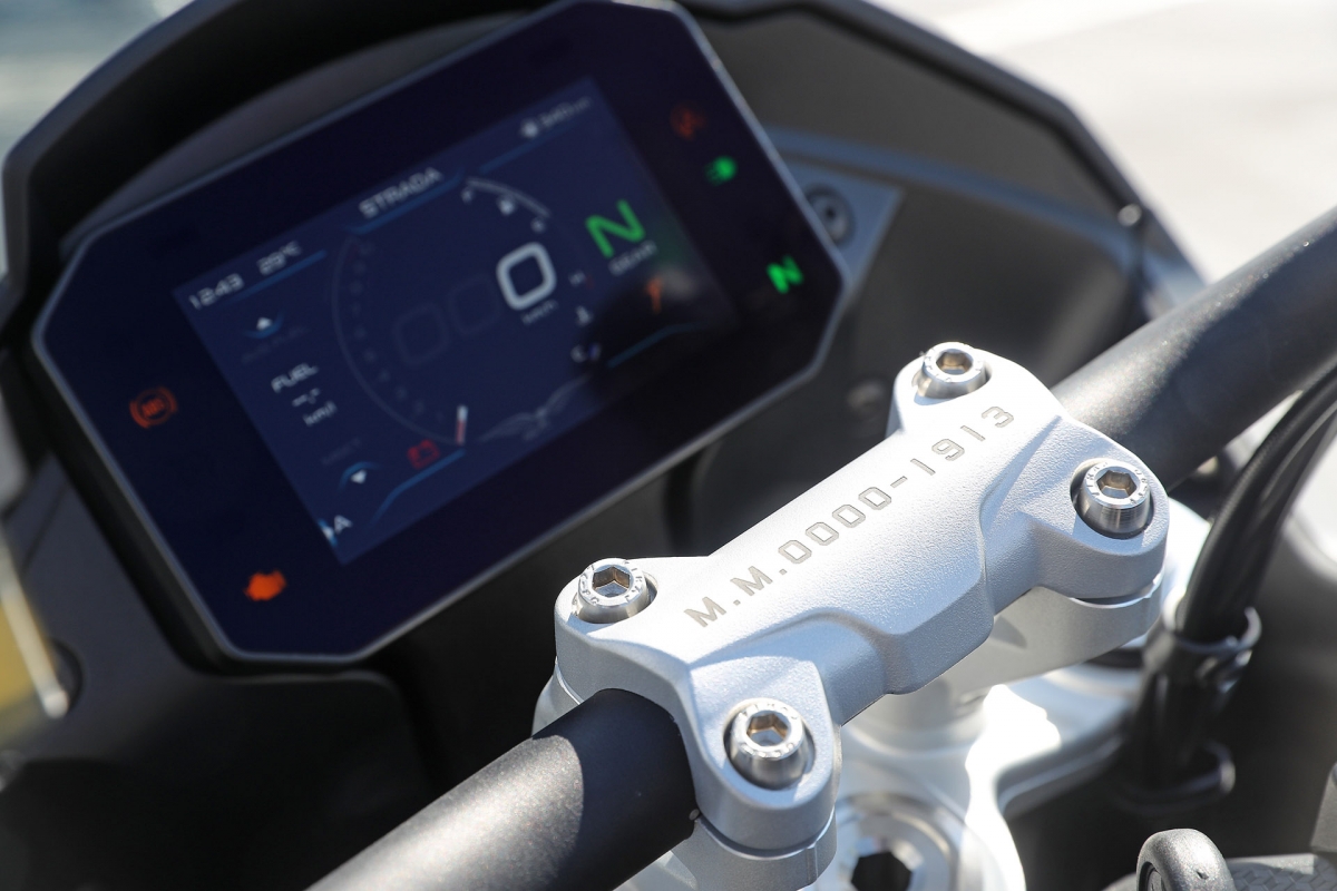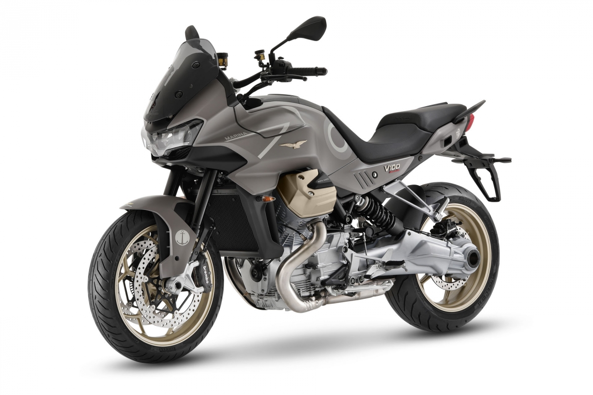 Para além do grafismo exclusivo, acrescem, ao equipamento da V100 Mandello, o sensor de pressão dos pneus TPMS e os punhos aquecidos.