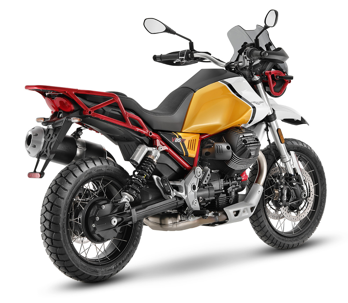 O cruise control e o painel a cores TFT são de série. Utilizando o Moto Guzzi MIA, a plataforma multimédia disponível como equipamento opcional, é possível ligar a moto ao smartphone, aumentando as funções do computador de bordo. As trêsversões de gráficos disponíveis para a V85 TT são também novas: Nero Etna, Giallo Mojave e Rosso Uluru.
