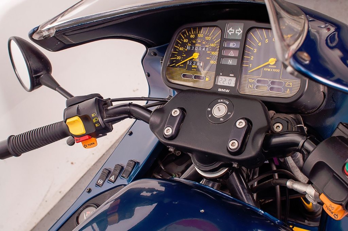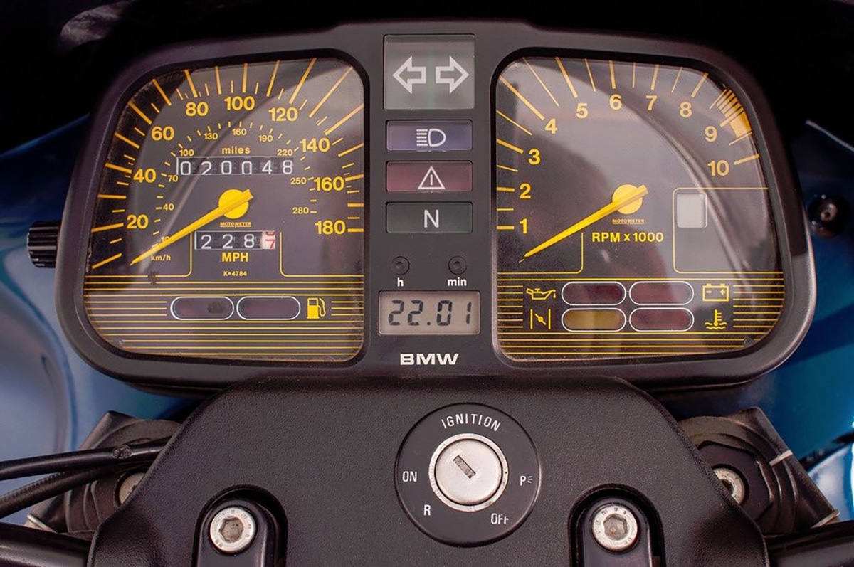 Olhando para o modelo destas fotos dá prazer ver os detalhes, os acabamentos, as jantes de liga leve de 3 raios, a harmonia de cores menos espampanante ou o gigante K1 nas laterais. Até o painel de instrumentos consegue ser atrativo… para uma moto do final da década de 80, numa altura em que a digitalização estava a começar a dar os primeiros passos, como mostra o relógio digital.