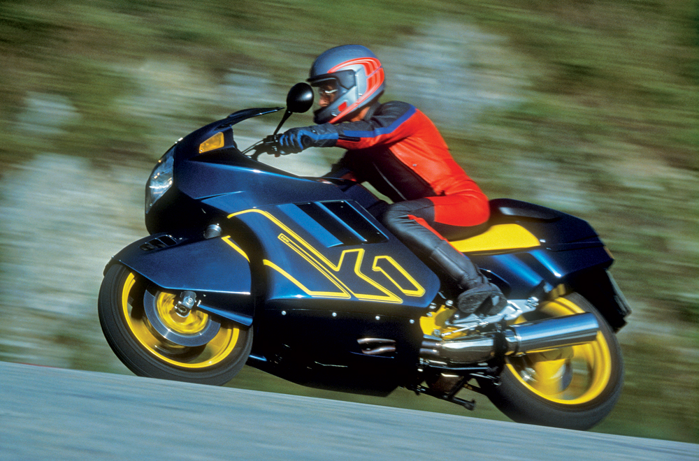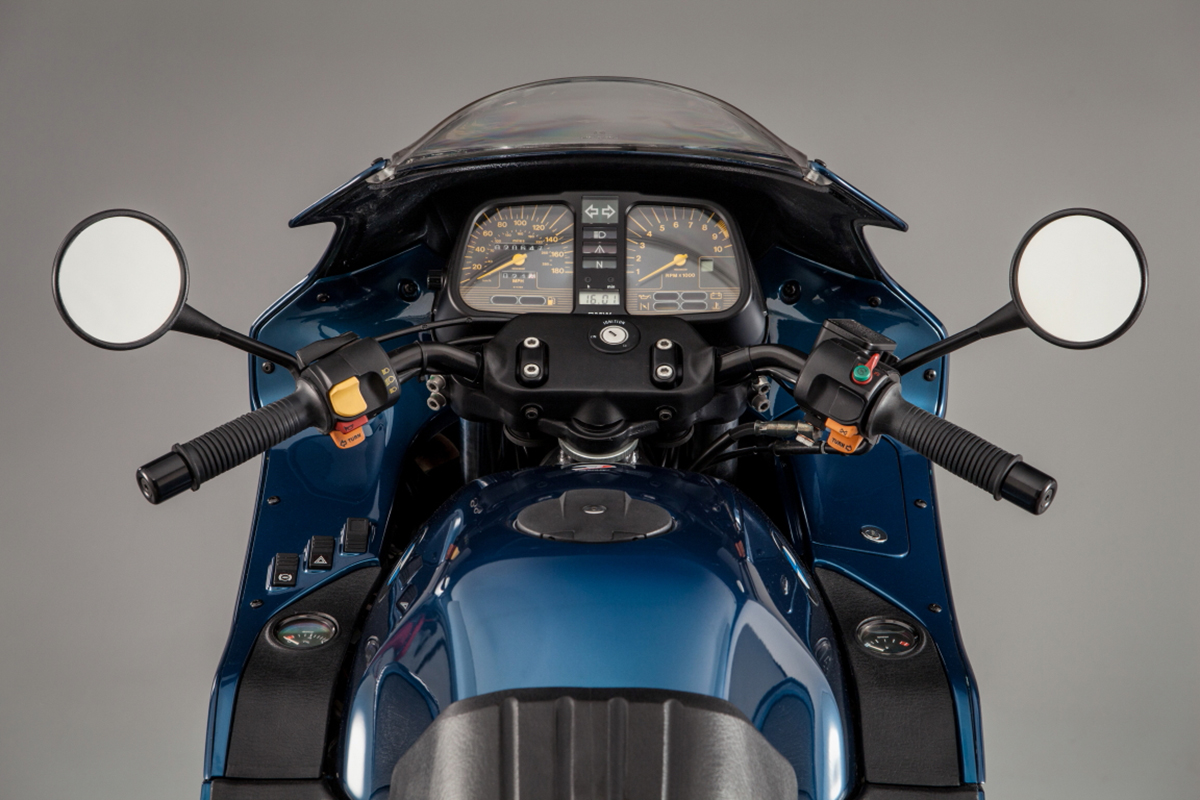 Não se pode negar o óbvio: a moto é rechonchuda e anafada (os mais de 250 kg na balança não enganam), vista de qualquer ângulo, mas foi deliberado e fez parte do grande investimento em túnel de vento para lhe garantir um excelente CX de 0,34, um valor mesmo referencial até para os dias de hoje! Em vez de mais cv… melhor aerodinâmica!