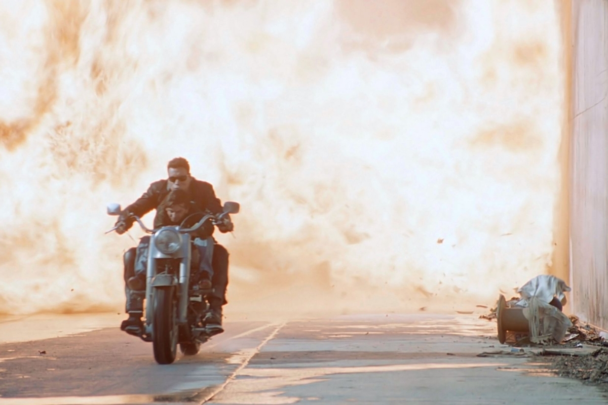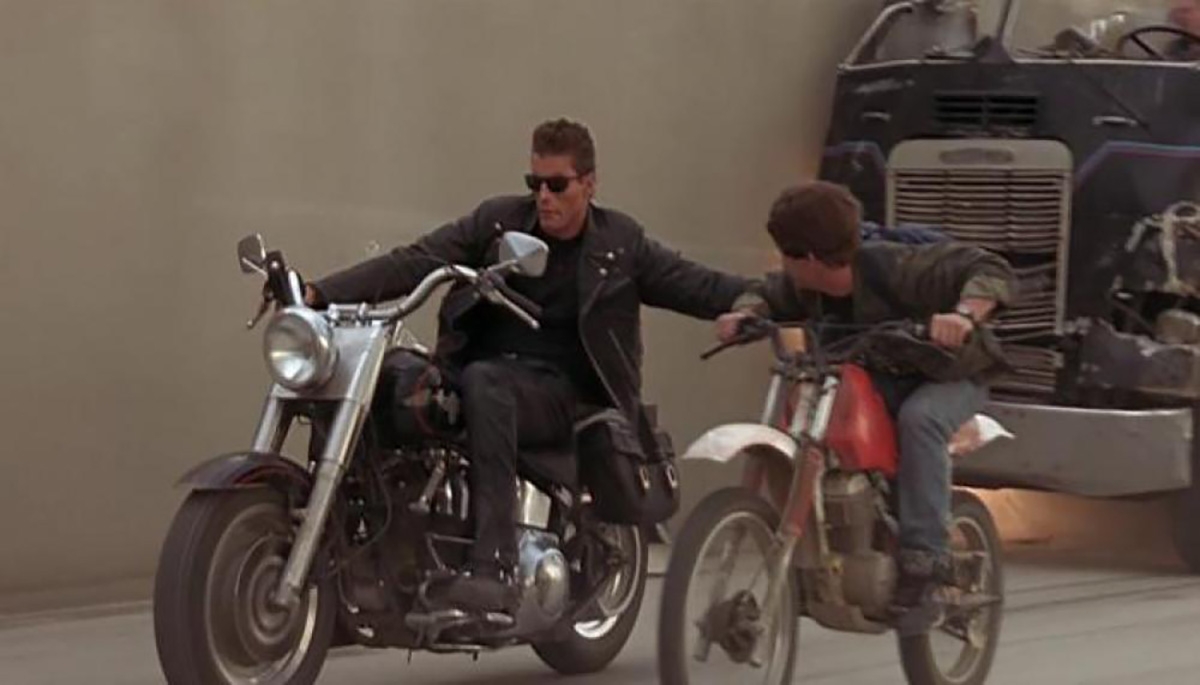 Esta perseguição é épica e fica para a história. Em especial o salto que o T-800 faz com a Fat Boy para dentro de um canal de drenagem de águas pluviais de Los Angeles para depois salvar Connor. Este tenta desesperadamente fugir do androide T-1000, montado numa pequena Honda XR 100R, que acaba depois esmagada pelo camião que o persegue.