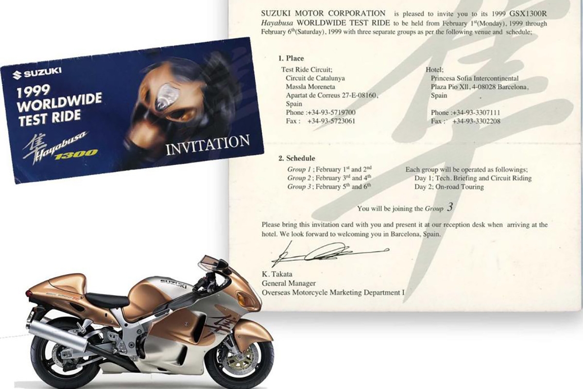 Esta afirmação resume praticamente tudo. Mesmo alguém que não saiba quem a proferiu ou a que moto se refere, percebe rapidamente que estamos a falar da Hayabusa. Está lá tudo! Imagino que quando K. Takata lançou o convite a uma série de personalidades e jornalistas para a testarem no Circuito da Catalunya de 1 a 6 de fevereiro de 1999 sabia perfeitamente o que estava a fazer, mas não sabia, provavelmente, o efeito que a moto iria ter nos que a testaram e no mundo das duas rodas daí para a frente… que nunca mais foi igual!