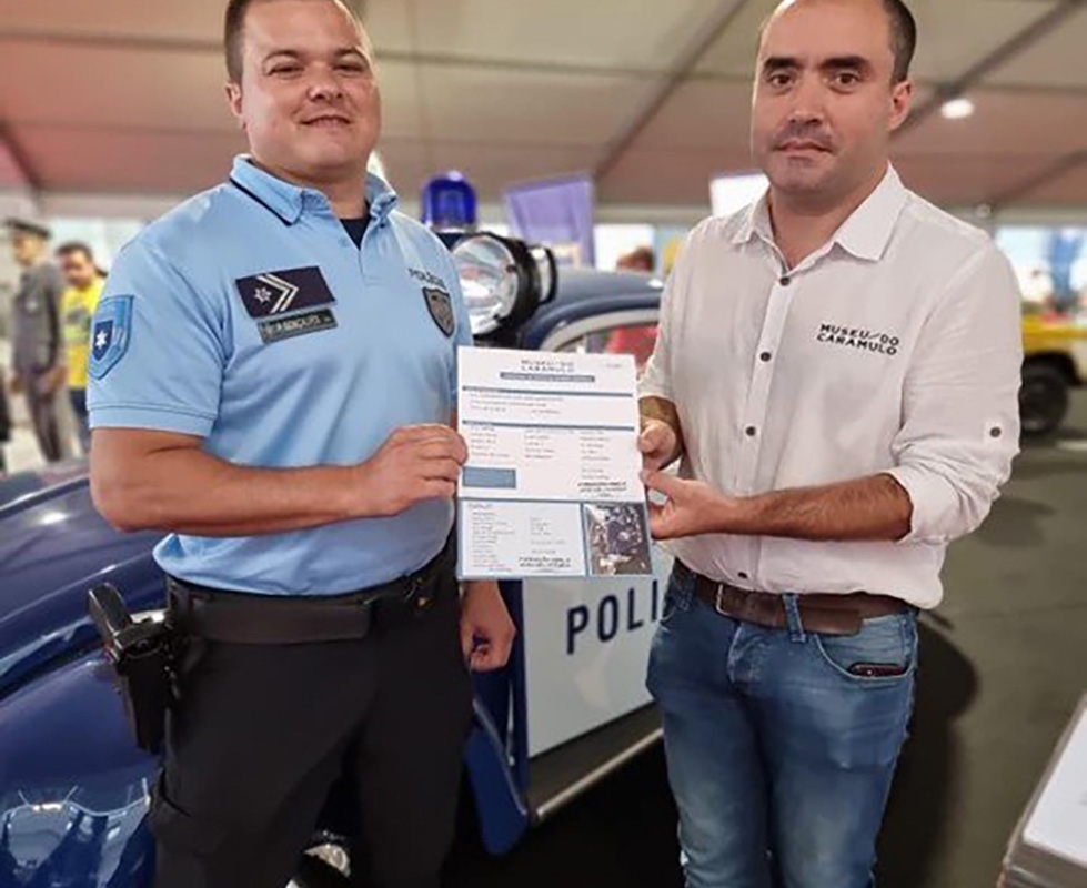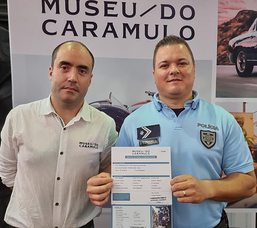 No Museu do Caramulo, o Agente Pedro Gonçalves, fez as honras da casa e colocou, com enorme satisfação, o respetivo dístico no para-brisas do veículo.