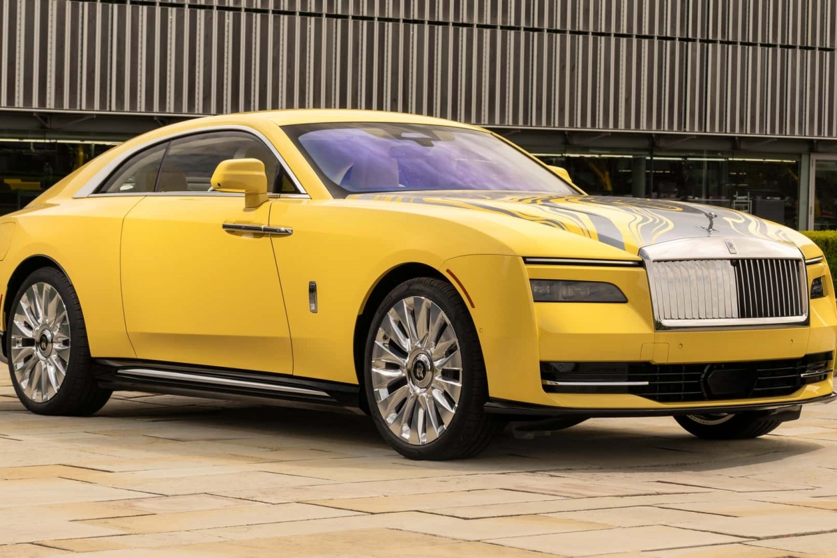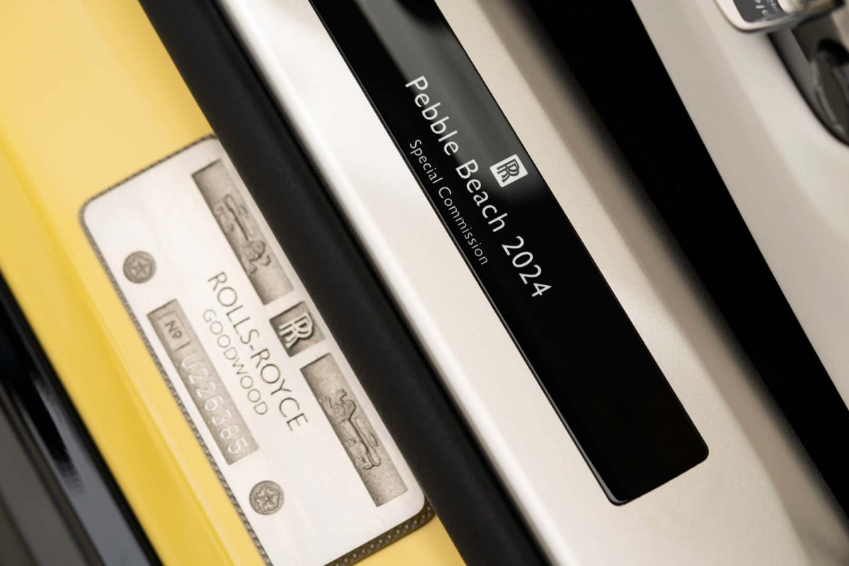 A pintura do carro chama-se Semaphore Yellow e foi criada especificamente para esta encomenda, de acordo com a Rolls-Royce. No capot, a obra de arte integrada chama-se Marble Paint Spill.